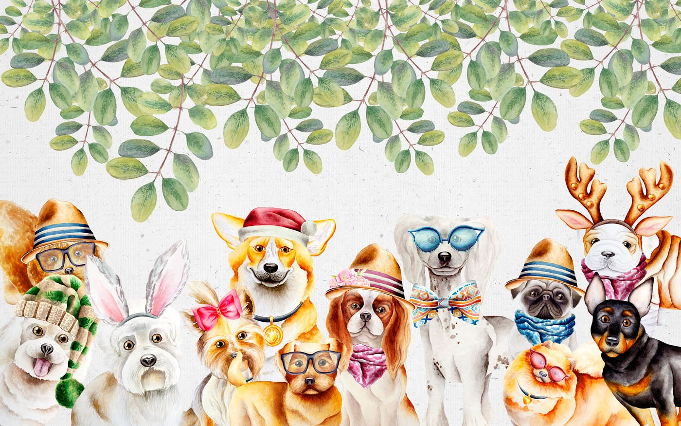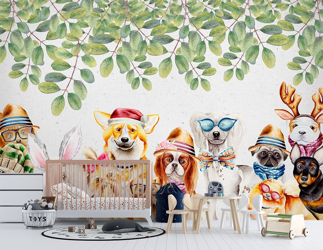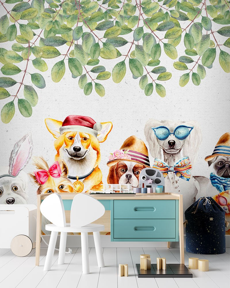 Dog Kids Animal Multicolour Wallpaper Mural,Self-Adhesive Peel And Stick 3D Wall Paper,Removable Bedroom Wall Decor