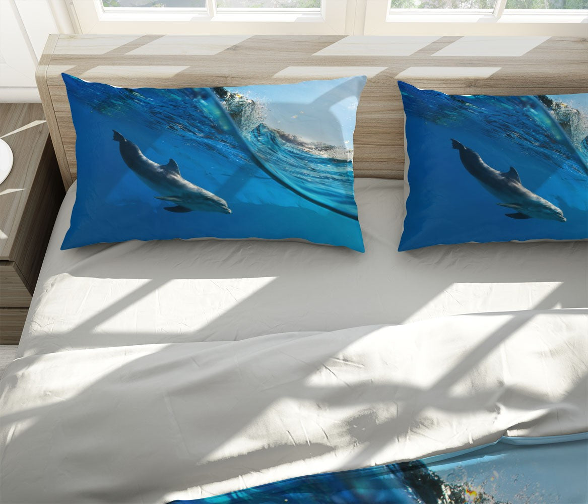 Dolphin Animals Sea Life Blue 3D Duvet Cover Set W Pillow Cover, Single Double Queen King Size, Printed Cotton Quilt Doona Cover 3 Pcs