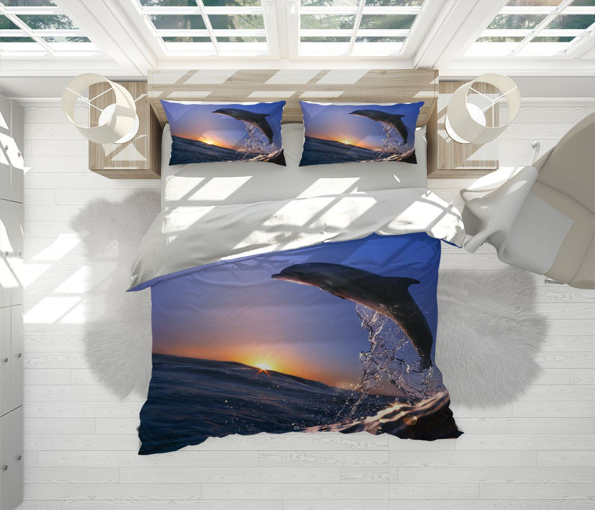 Dolphin Animals Sea Life Blue 3D Duvet Cover Set W Pillow Cover, Single Double Queen King Size, Printed Cotton Quilt Doona Cover 3 Pcs