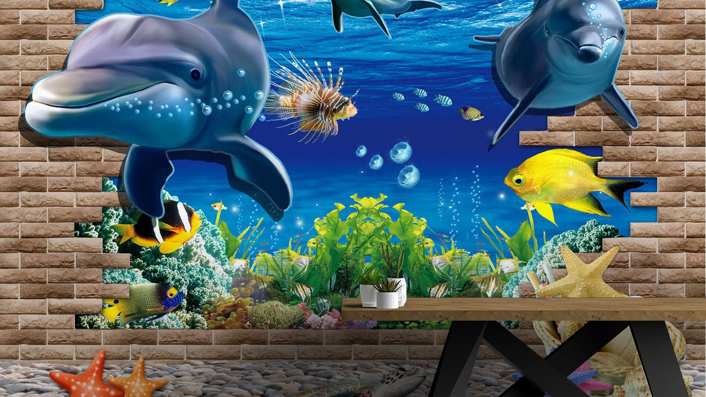 Dolphin Animals Sea Life Blue Wallpaper Mural
