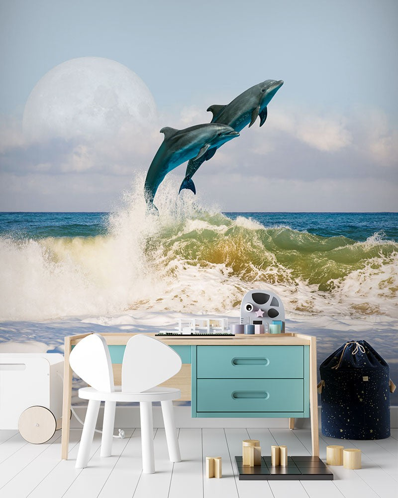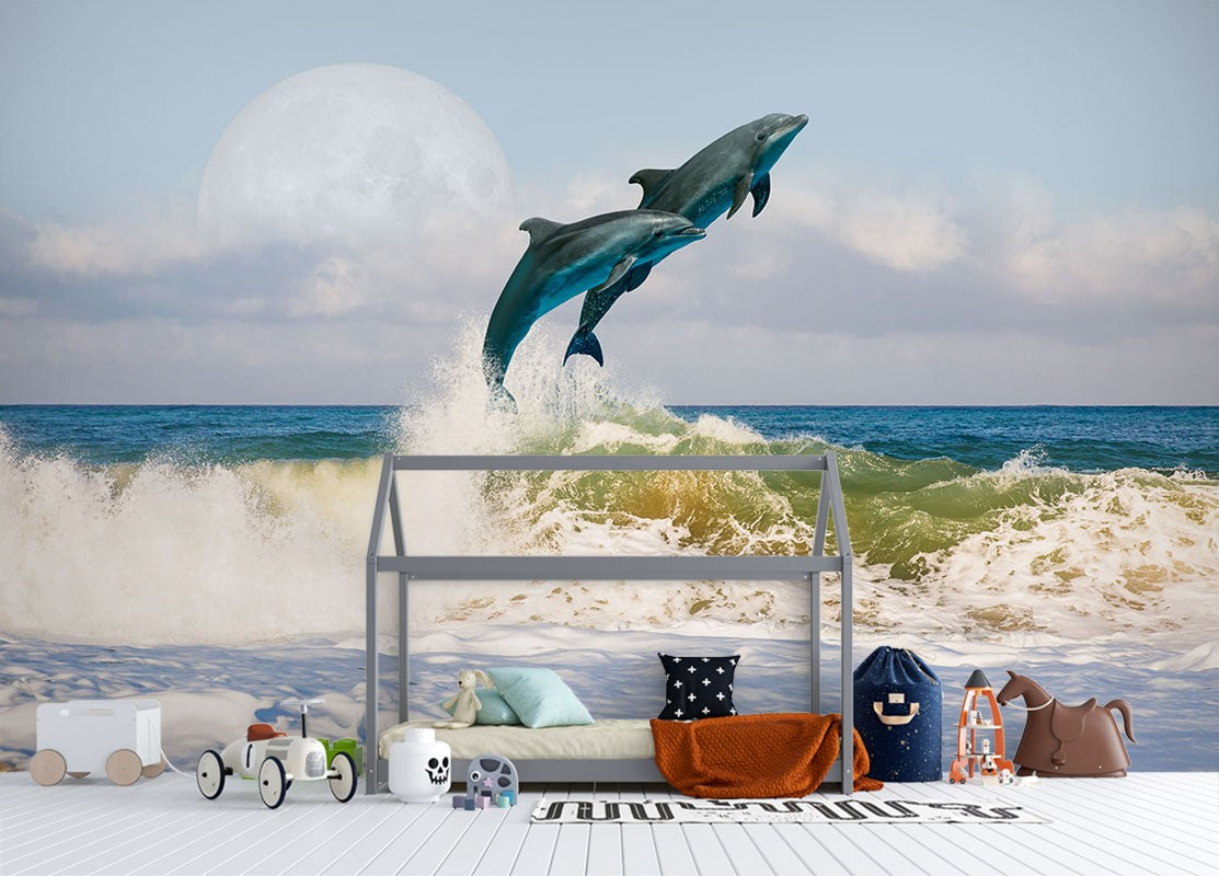 Dolphin Kids Animal Blue Wallpaper Mural,Self-Adhesive Peel And Stick 3D Wall Paper,Removable Designer Wall Decor