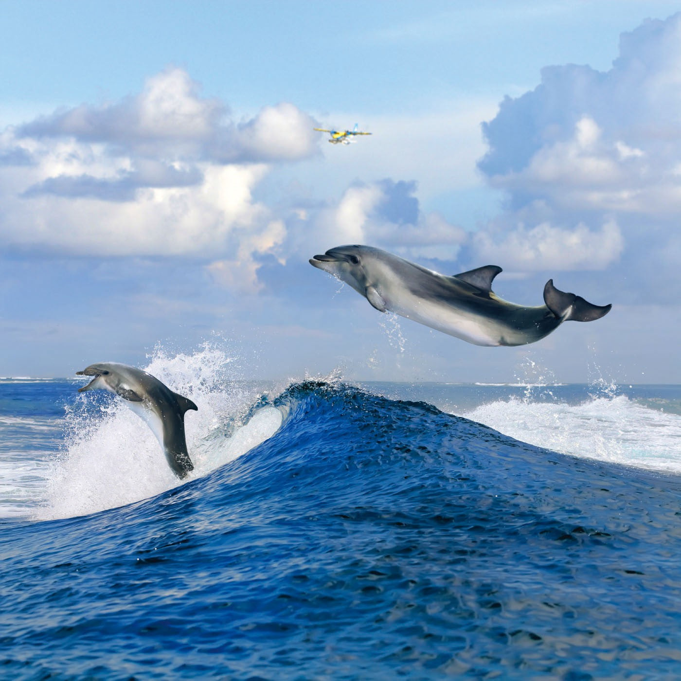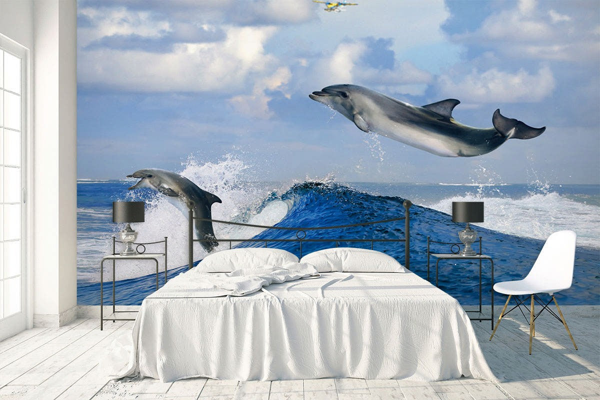 Dolphin Surfing Animals Sea Life Blue Wallpaper Mural,Self-Adhesive Peel And Stick 3D Wall Paper,Designer Bedroom Wall Decor