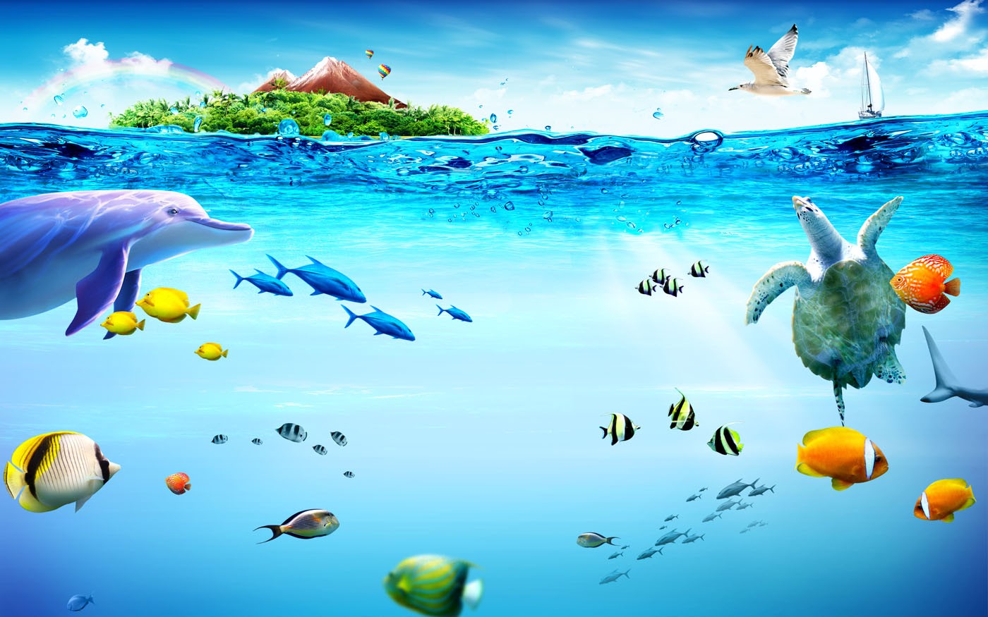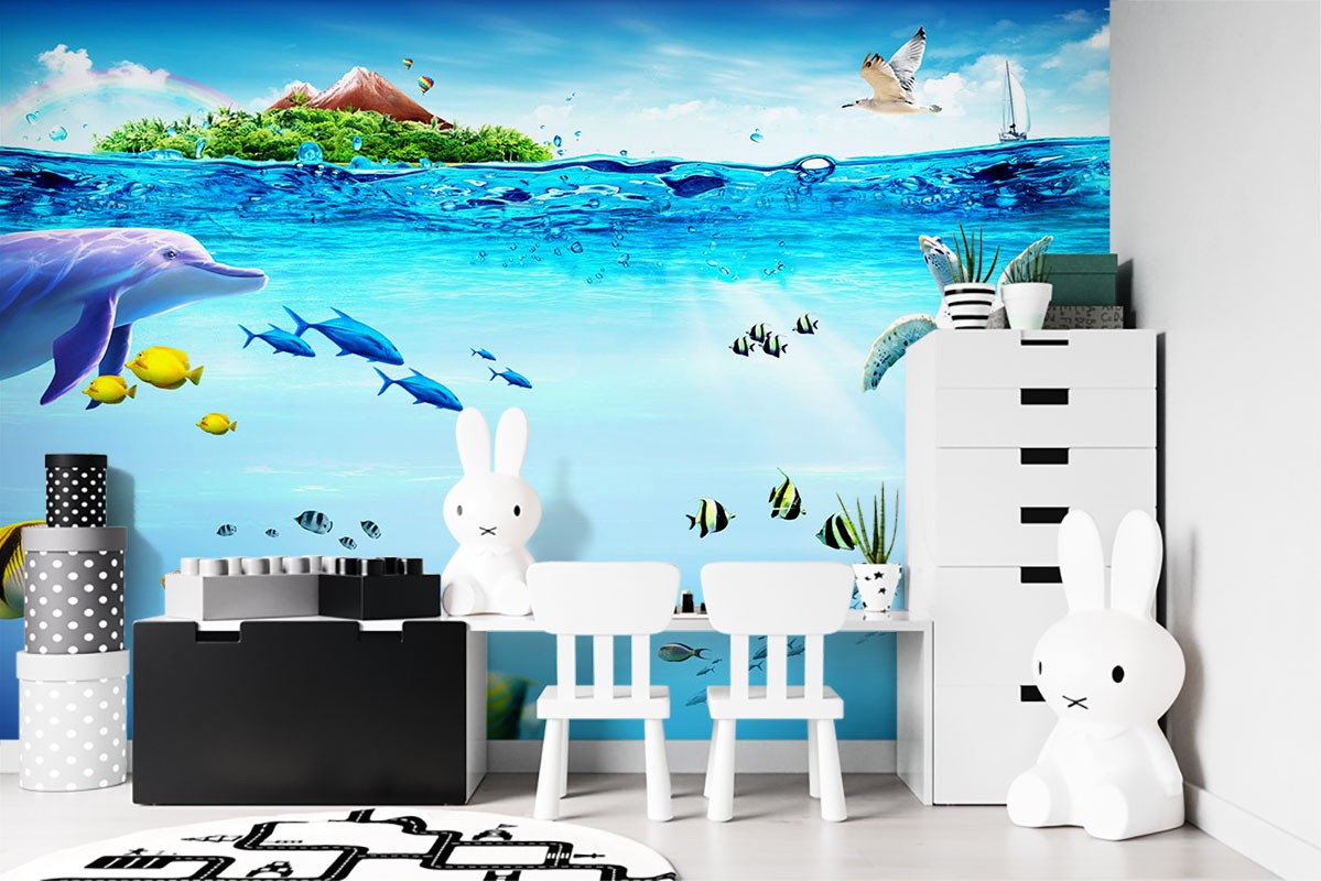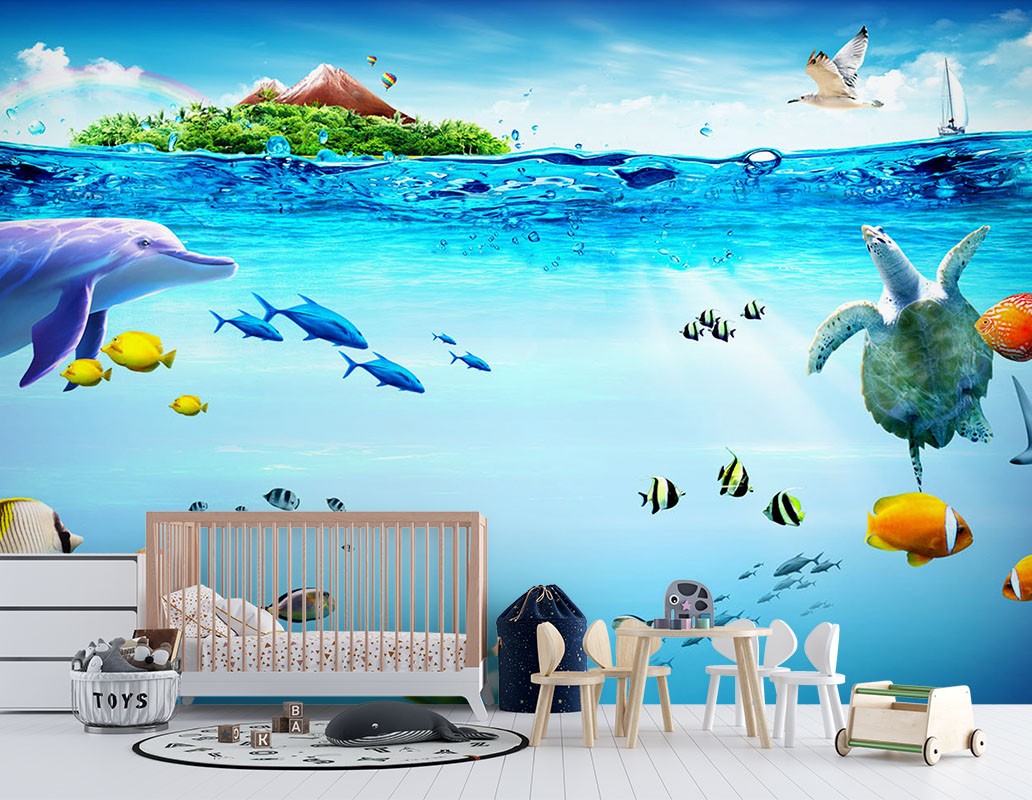 Dolphin Turtle Kids Animal Blue Wallpaper Mural,Self-Adhesive Peel And Stick 3D Wall Mural,Australian Company Designer Wall Decor