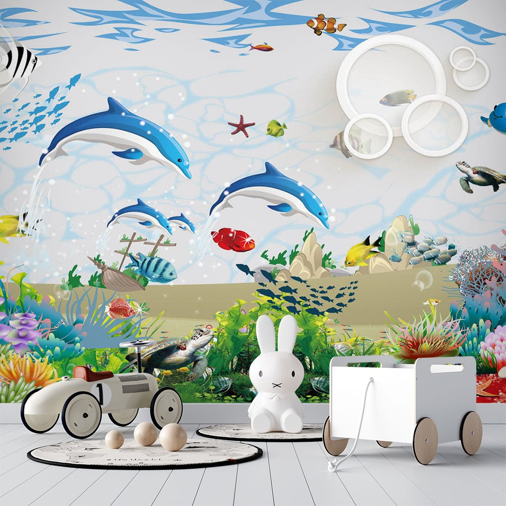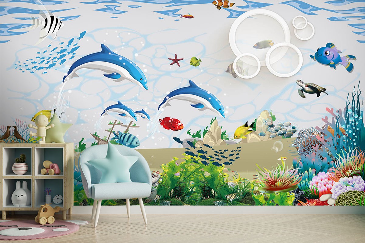 Dolphins Underwater Kids Art For Kids Colorful Wallpaper Mural