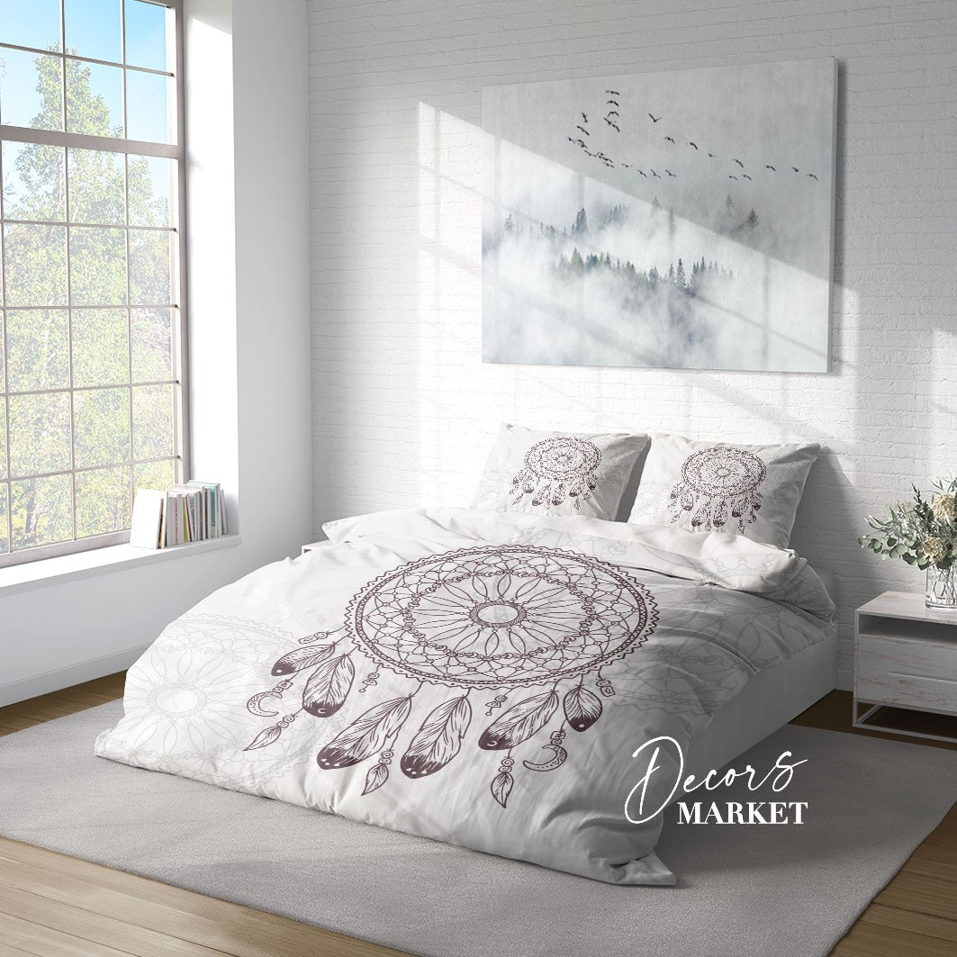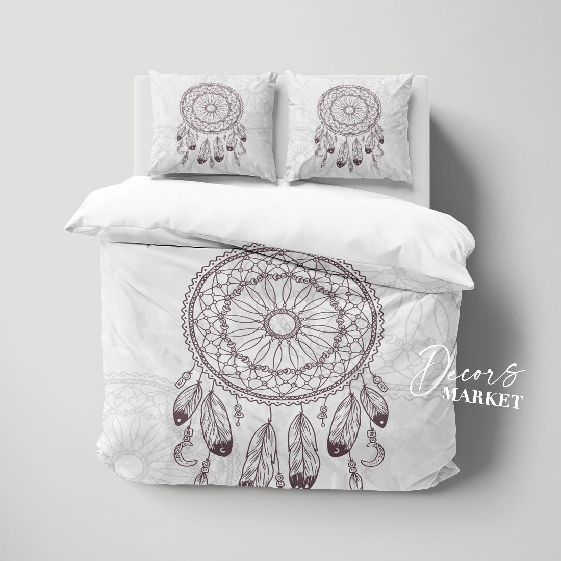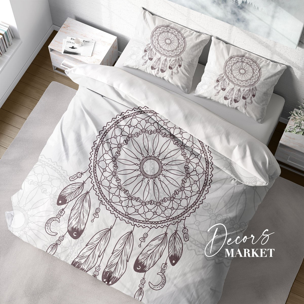 Dreamcatcher Pattern Totem Duvet Cover Set w Pillowcases, Gray Kids Fantasy 3D Quilt Cover, 3pc Single Double Queen King Size Doona Cover