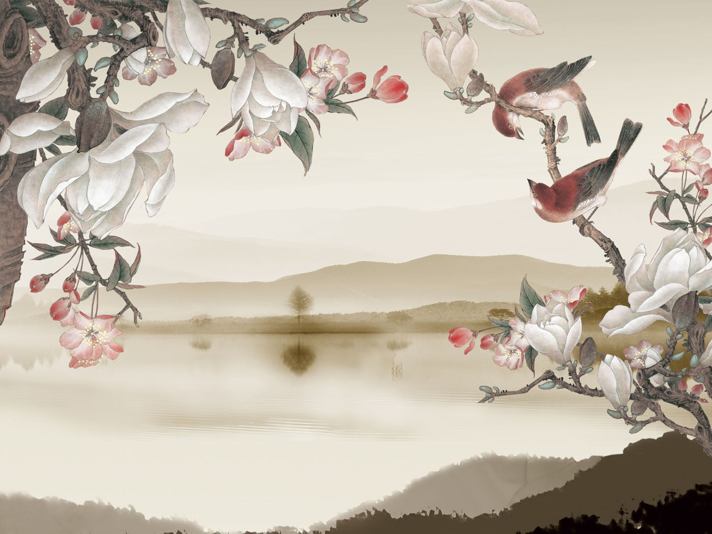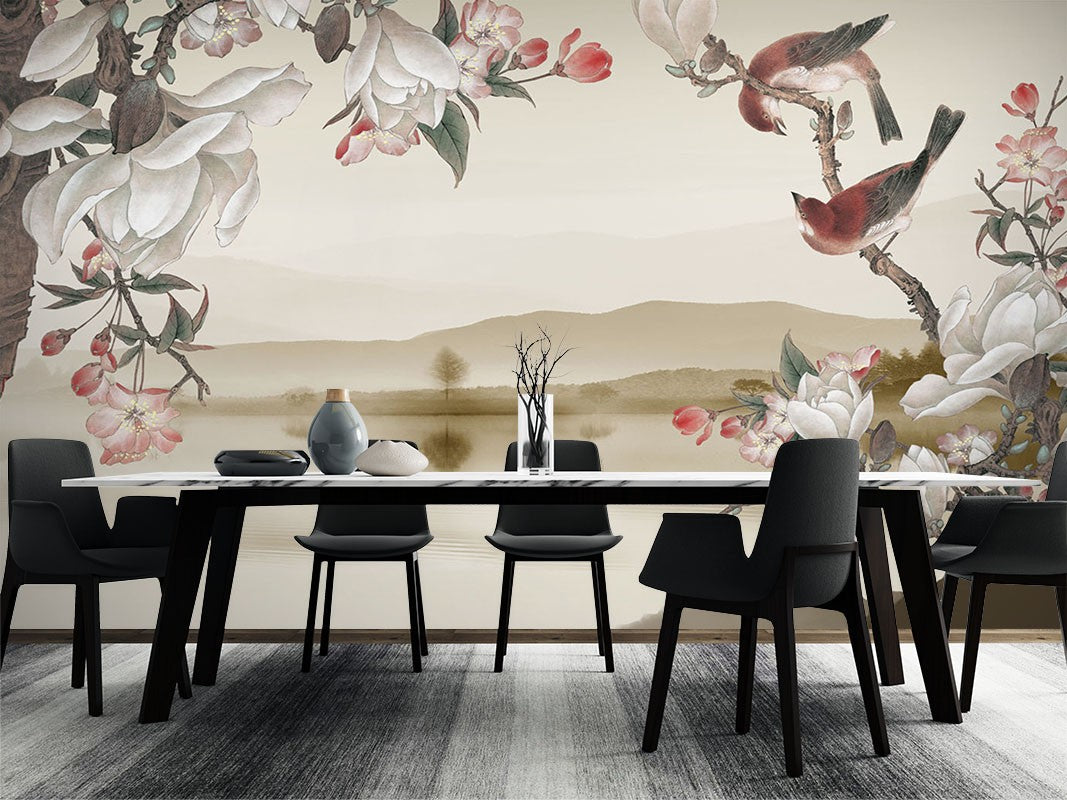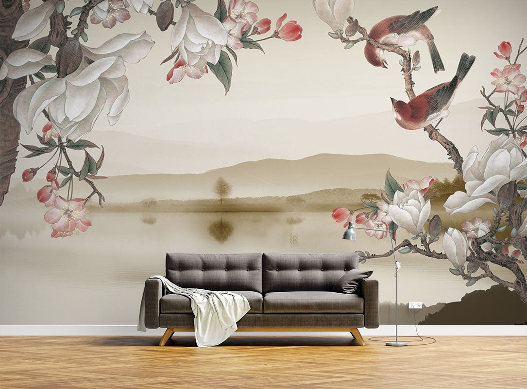 Dutch Flower Bird Floral Dutch Flowers Brown Wallpaper Mural,Self-Adhesive Peel And Stick 3D Wall Paper,Removable Bedroom Wall Decor