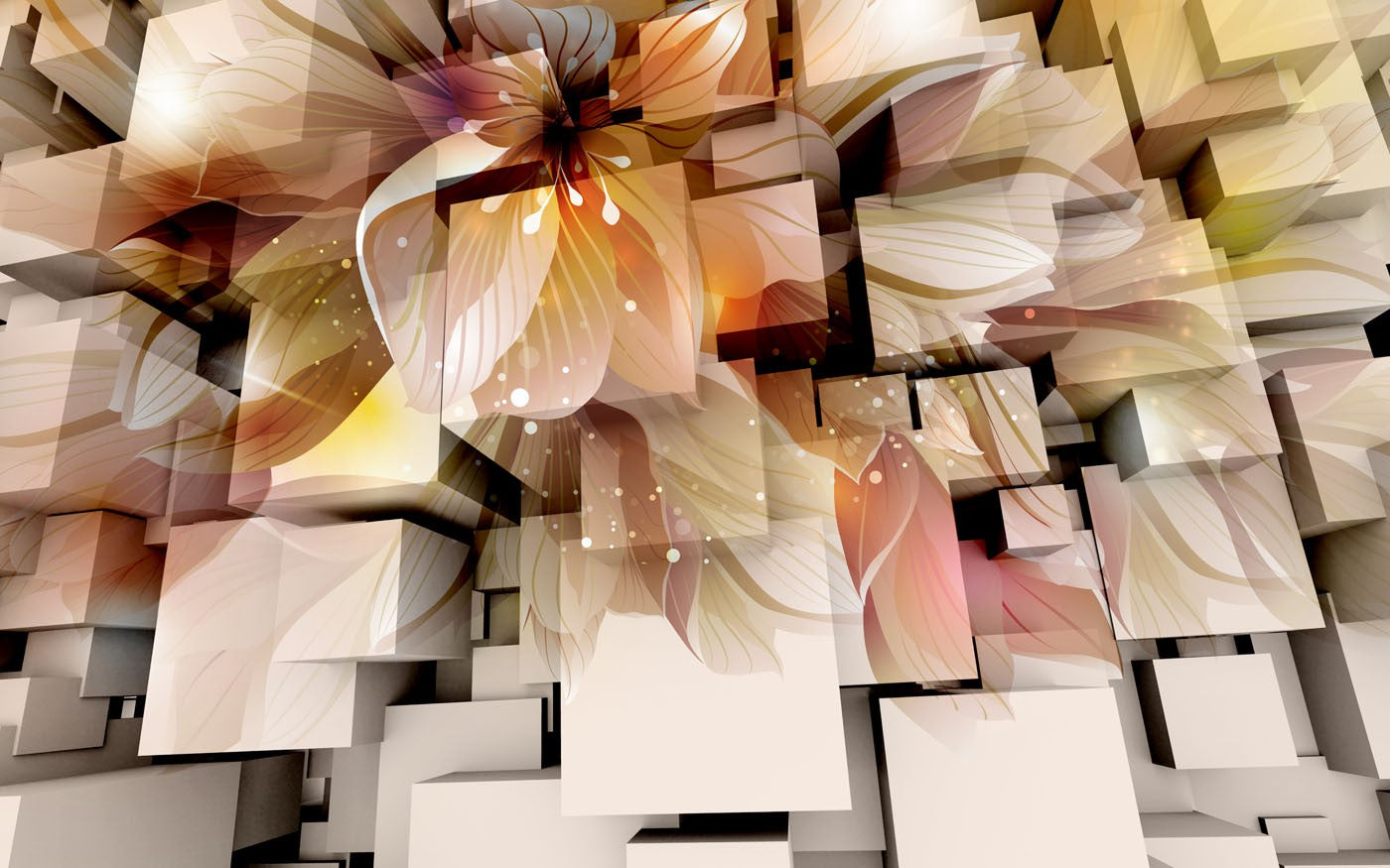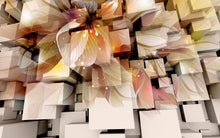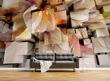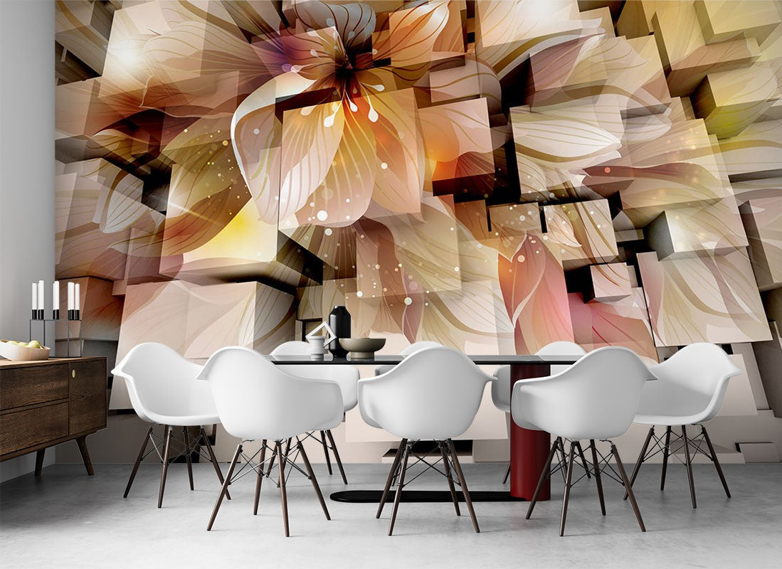 Dutch Flower Cube Art Abstract Brown Wallpaper Mural,Self-Adhesive Peel And Stick 3D Wall Decal,Bedroom Removable Wall Decor