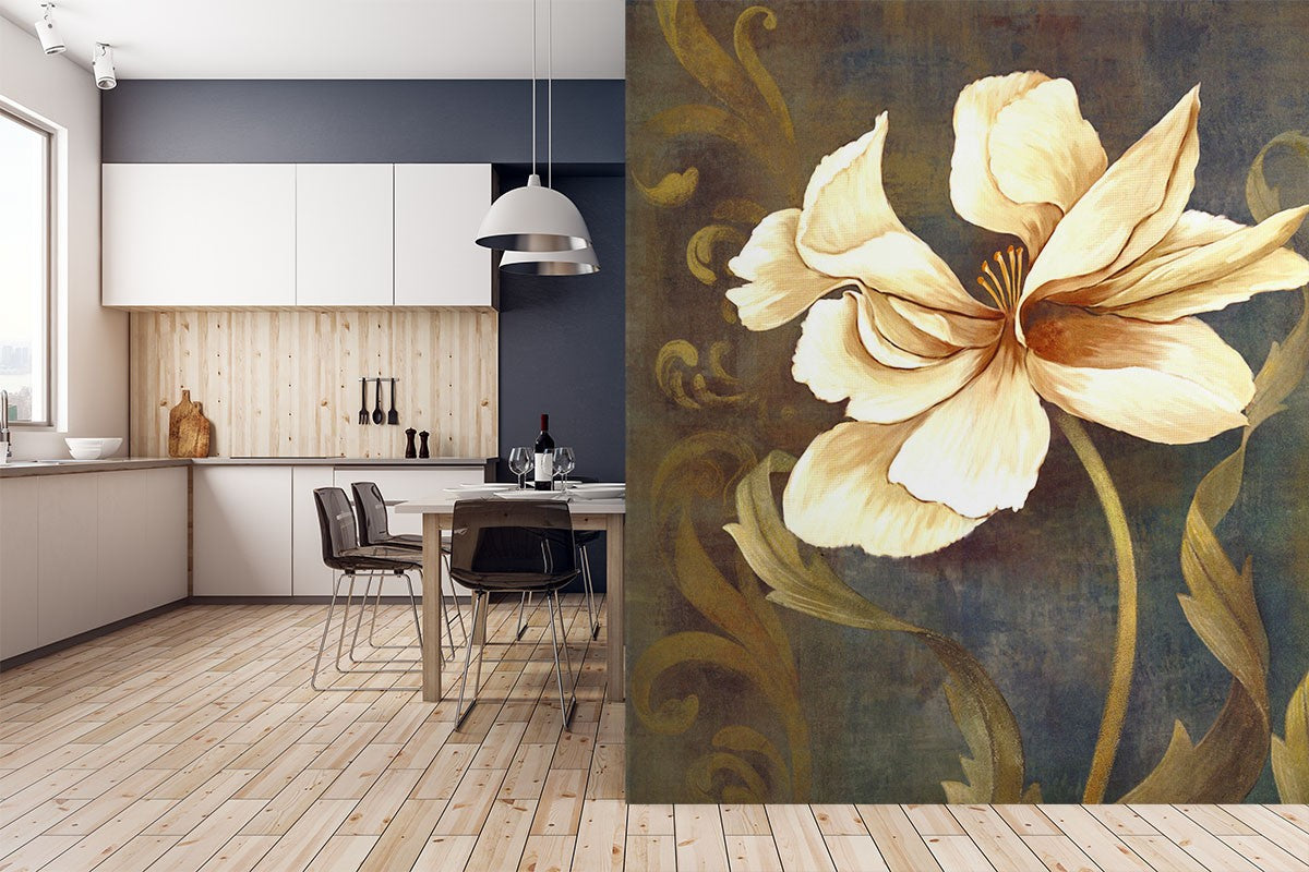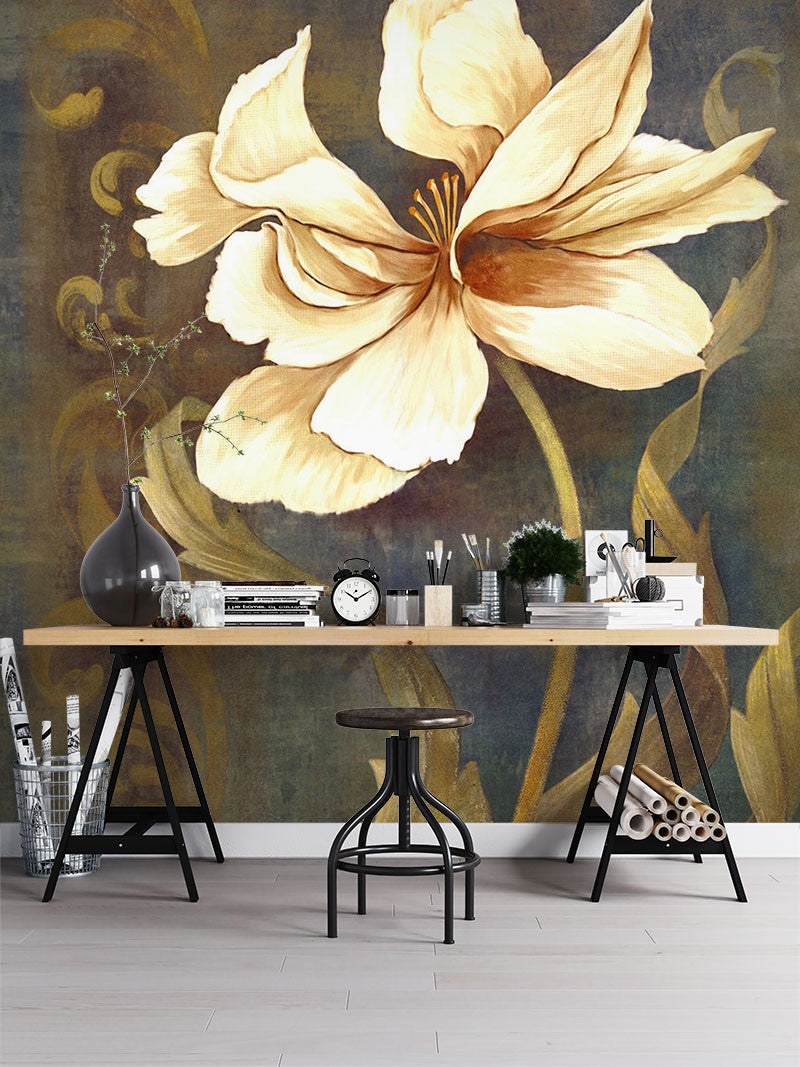 Dutch Flower Painting Art Still Life Gold Wallpaper Mural,Self-Adhesive Peel And Stick 3D Wall Art,Bedroom Designer Wall Decor