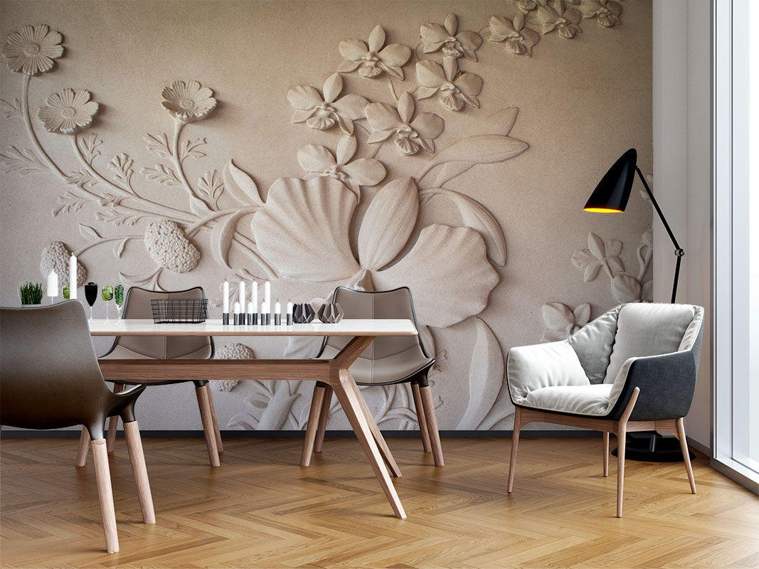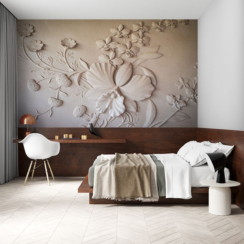Dutch Flower Relief Art 3D Creamy Wallpaper Mural,Self-Adhesive Peel And Stick 3D Wall Decor,Designer Bedroom Wall Decor