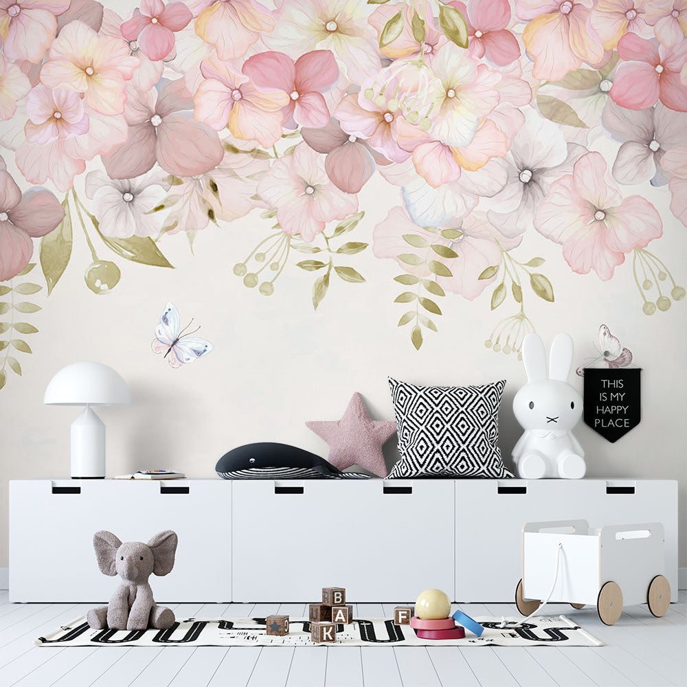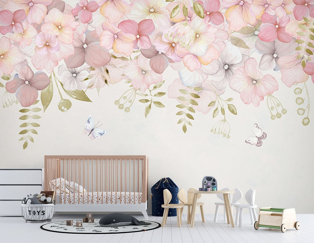 Dutch Flowers Butterflies Kids Cartoon Bright Wallpaper Mural,Self-Adhesive Peel And Stick 3D Wall Mural,Bedroom Removable Wall Decor