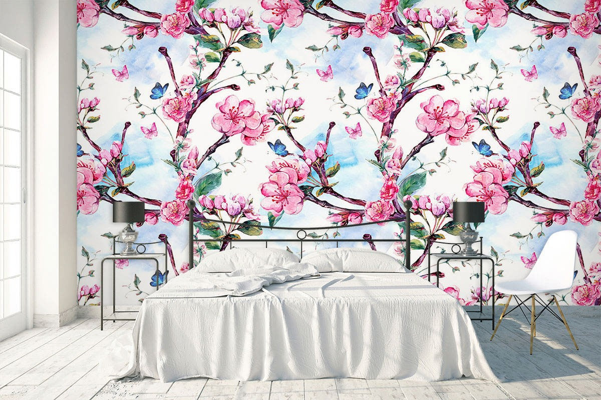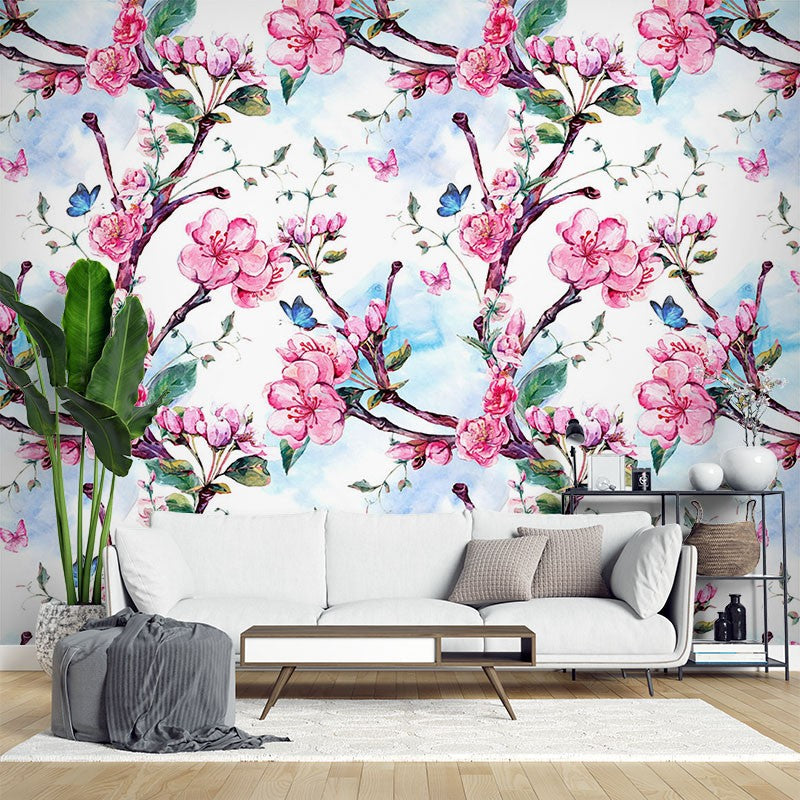 Dutch Flowers Floral Pink Wallpaper Mural,Self-Adhesive Peel And Stick 3D Wall Paper,Removable Bedroom Wall Decor