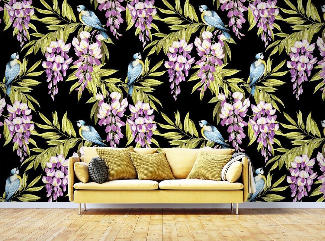 Dutch Flowers Floral Purple Wallpaper Mural,Self-Adhesive Peel And Stick 3D Wall Art,Australian Company Removable Wall Decor