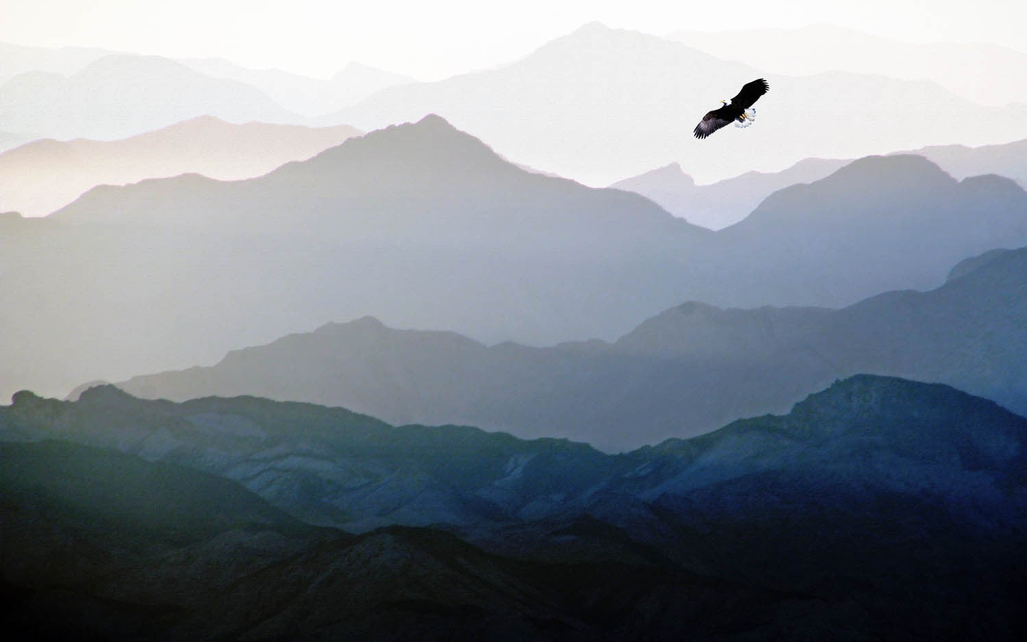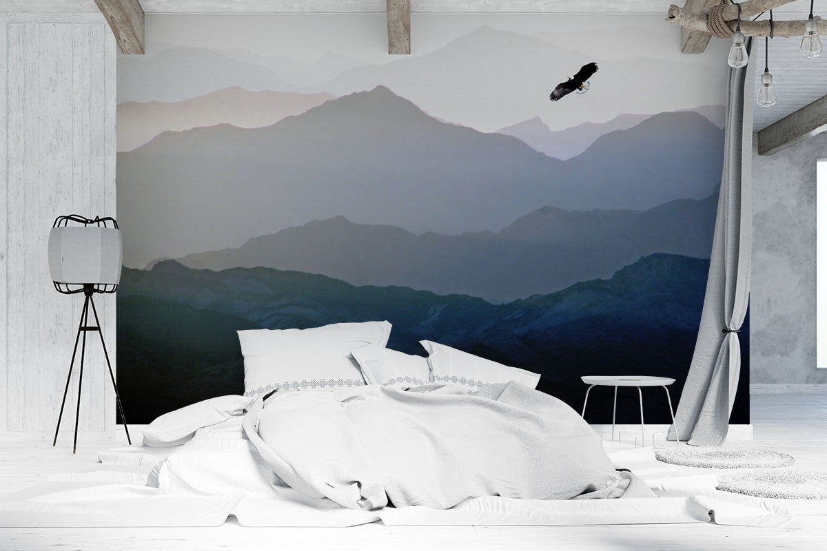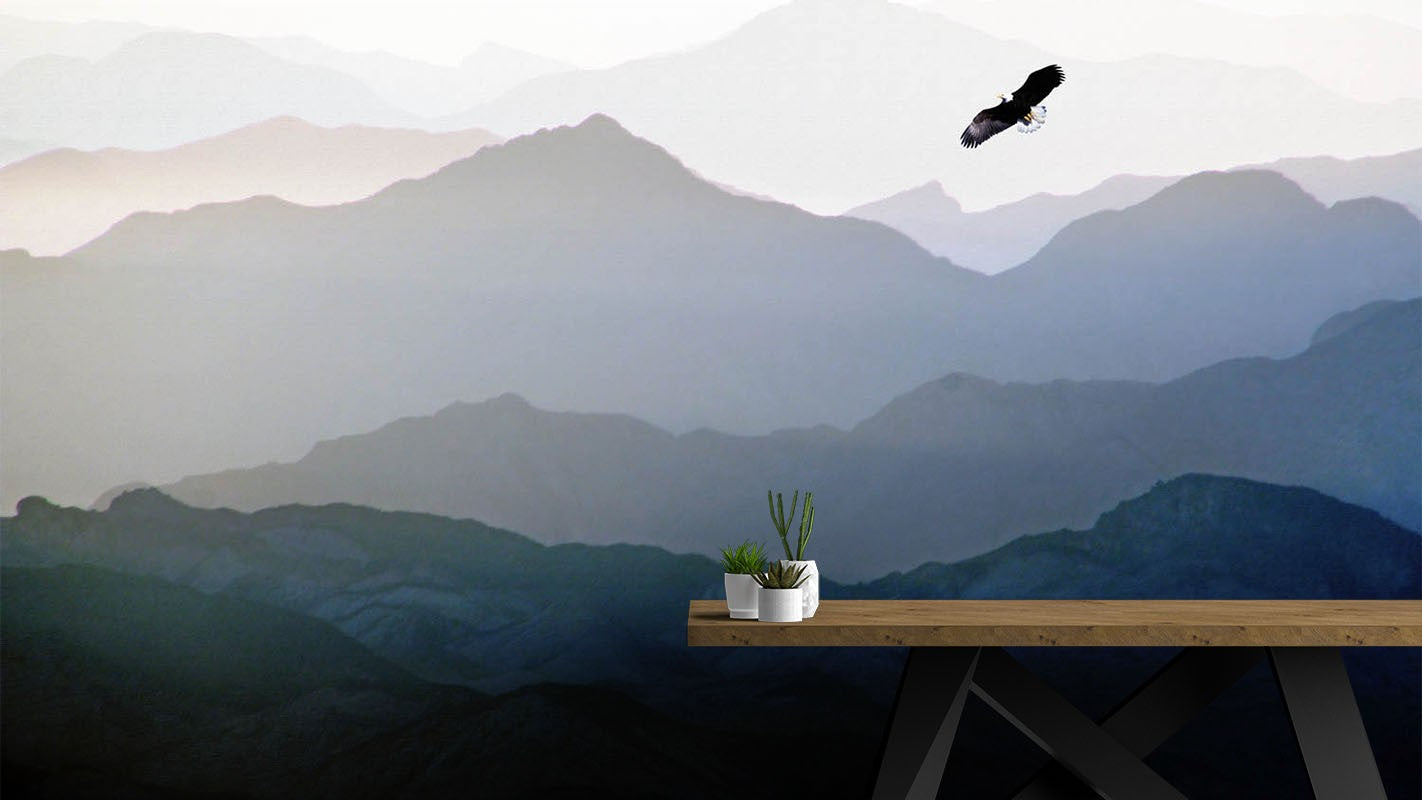 Eagle Nature Mountain Black And White Wallpaper Mural