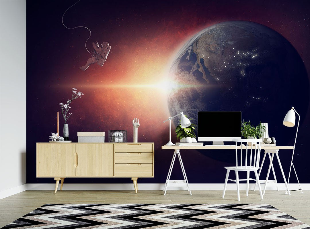 Earth Astronaut Nature Space Blue Wallpaper Mural,Self-Adhesive Peel And Stick 3D Wall Mural,Bedroom Designer Wall Decor