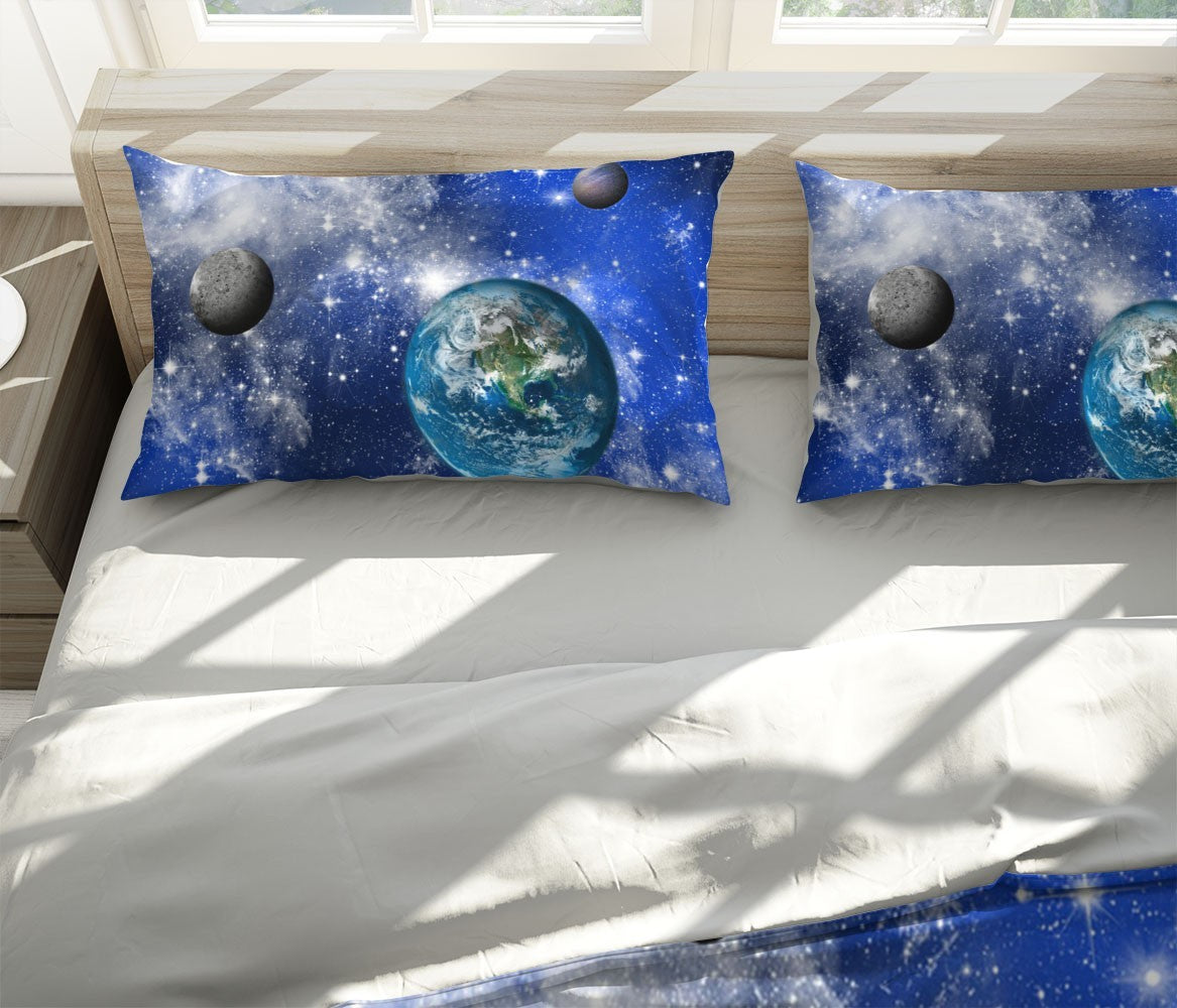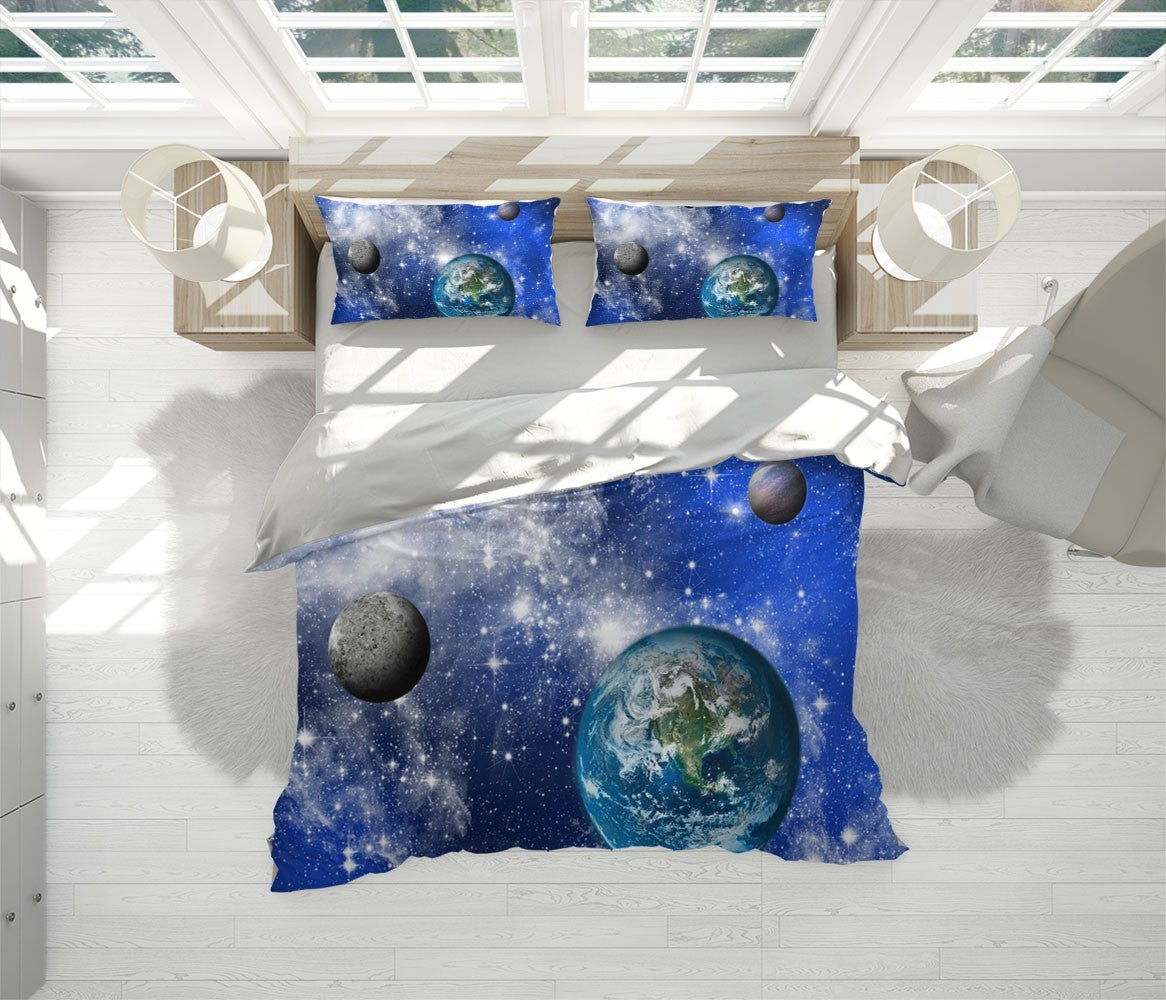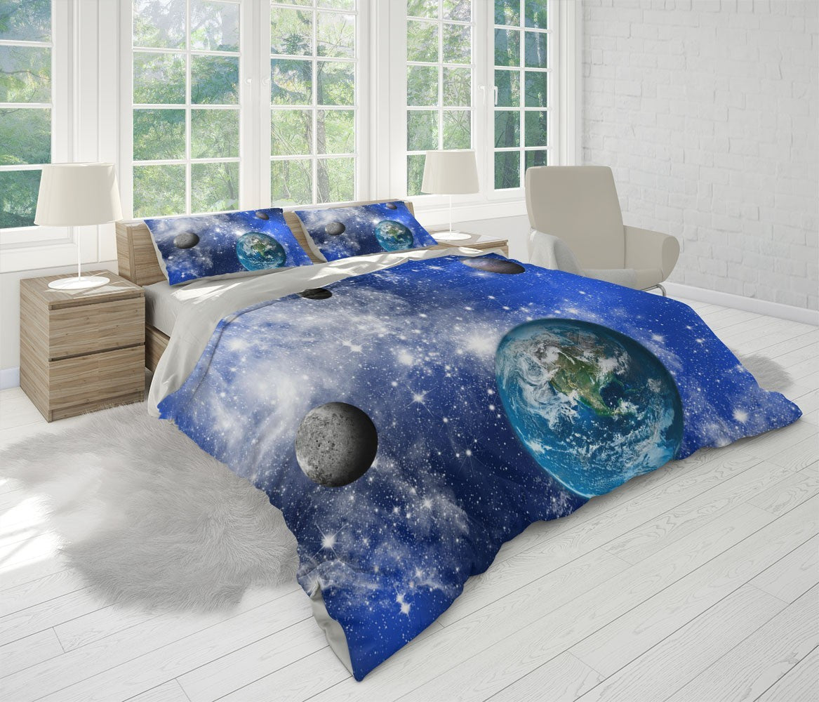 Earth Galaxy Duvet Cover Set W Pillow Cover, Blue Nature Space 3D Quilt Cover, Single Double Queen King Size Doona Cover