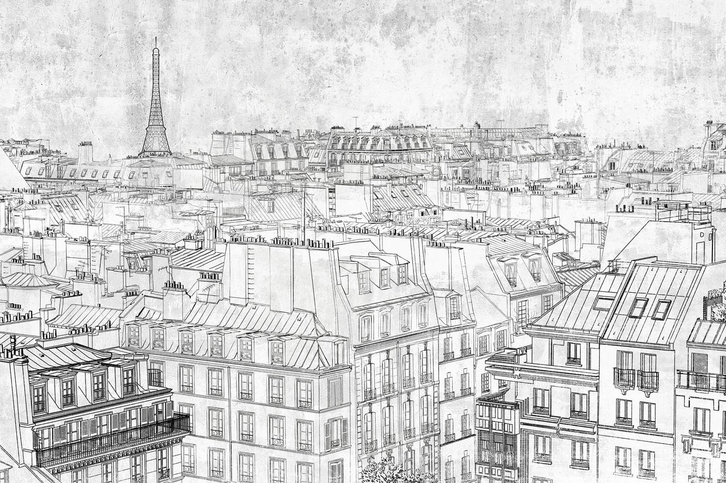 Eiffel Tower City Landmarks Black And White Wallpaper Mural