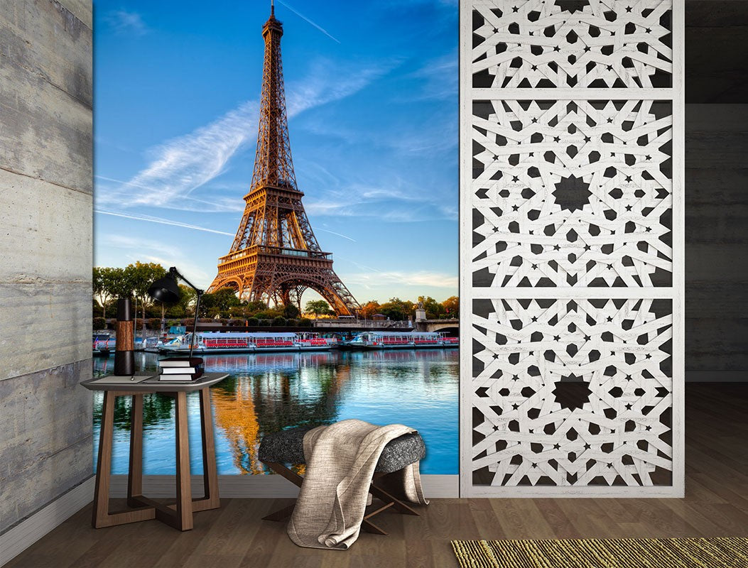 Eiffel Tower City Landmarks Blue Wallpaper Mural,Self-Adhesive Peel And Stick 3D Wall Decor,Designer Australian Company Wall Decor