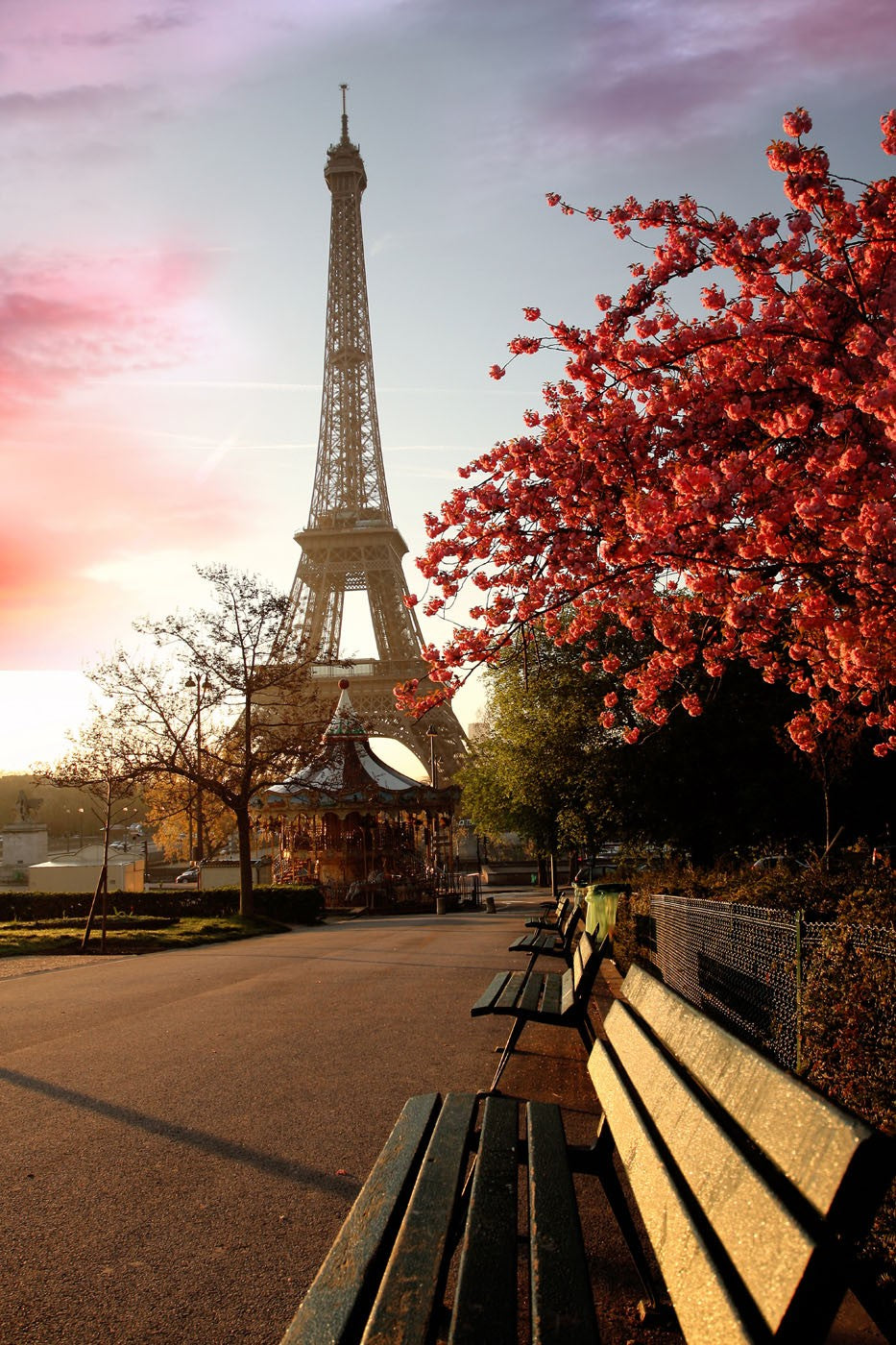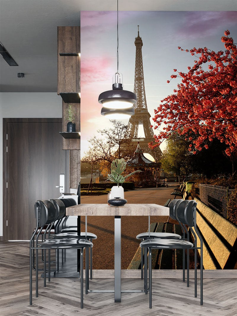 Eiffel Tower City Landmarks Brown Wallpaper Mural,Self-Adhesive Peel And Stick 3D Wall Art,Bedroom Removable Wall Decor