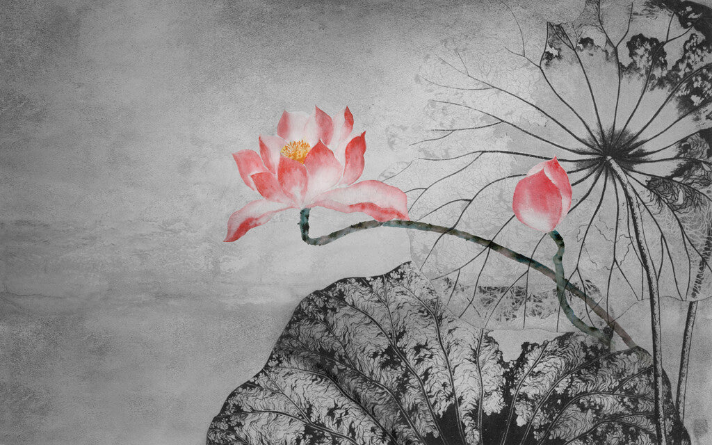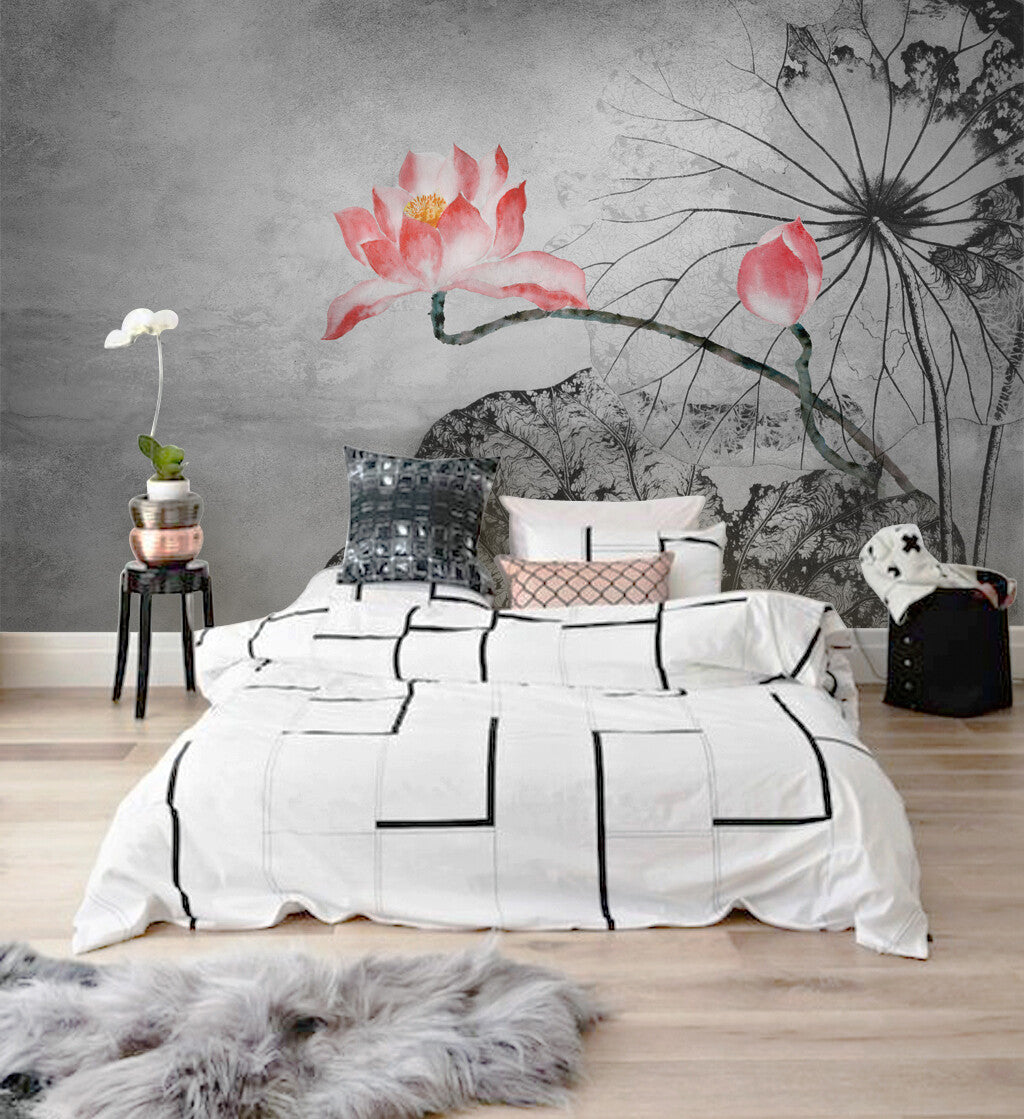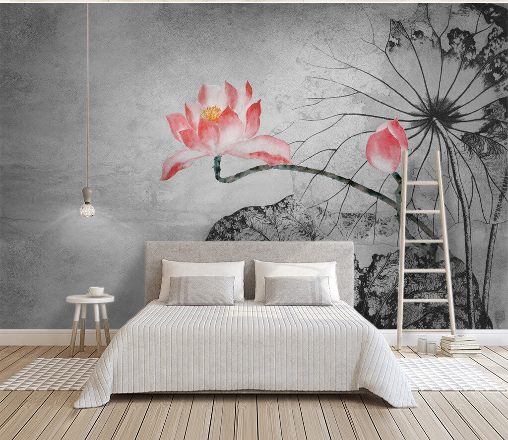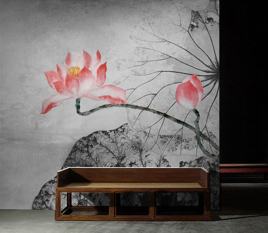 Elegant Lotus Bloom Oriental-Inspired Wall Mural