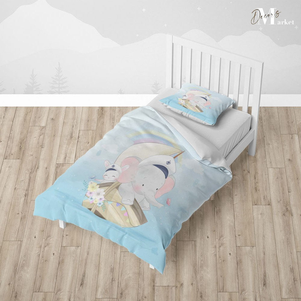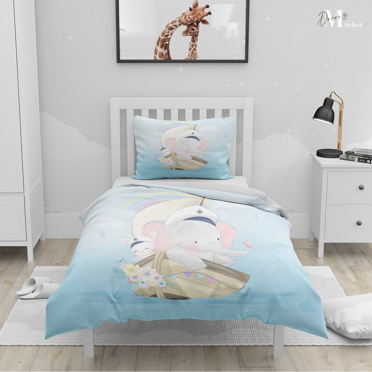 Elephant Cat Boat Duvet Cover Set w Pillow Cover, Creamy Art Watercolor 3D Quilt Cover, Single Double Queen King Size Doona Cover