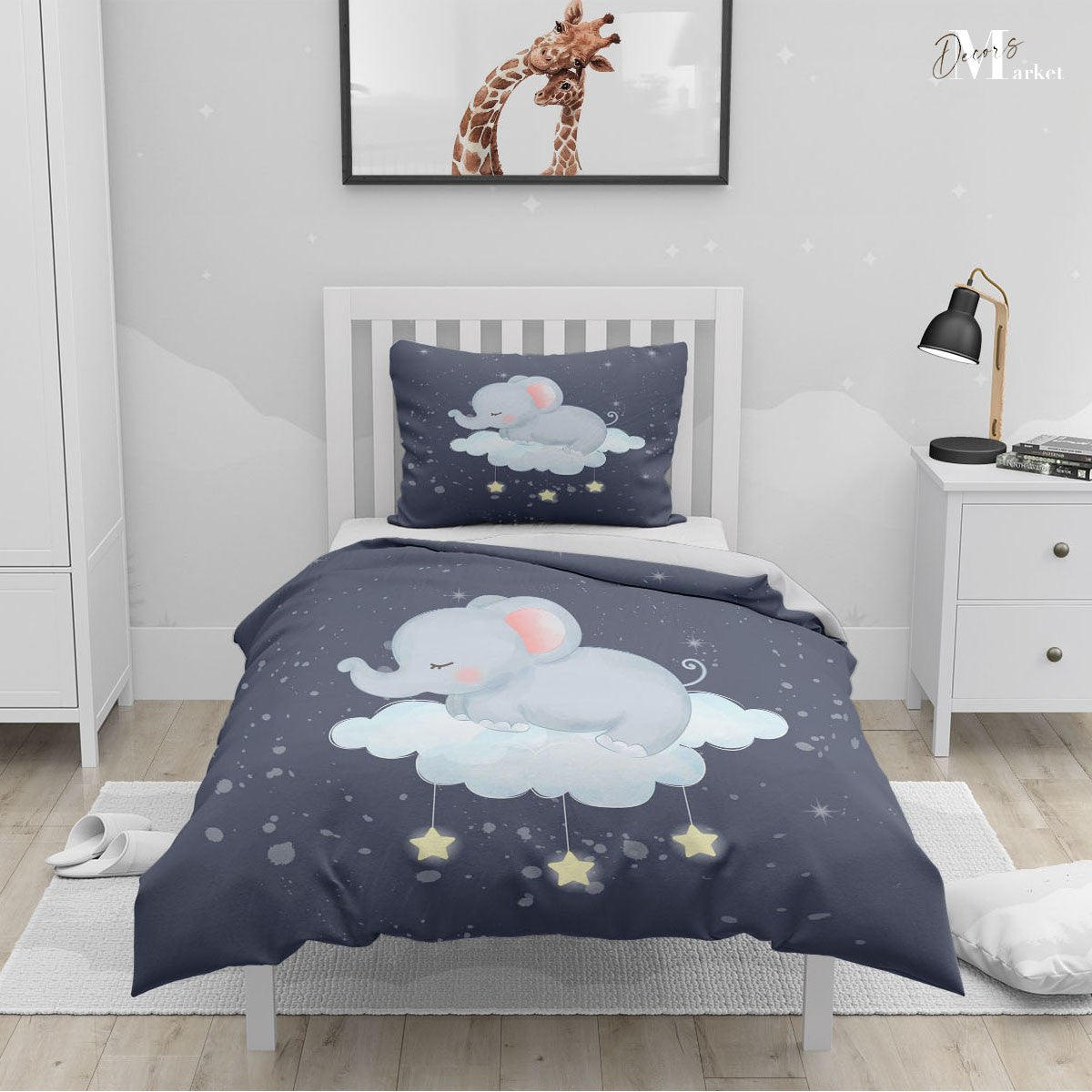 Elephant On Clouds Duvet Cover Set w Pillow Cover, Dark Art Watercolor 3D Quilt Cover, Single Double Queen King Size Doona Cover