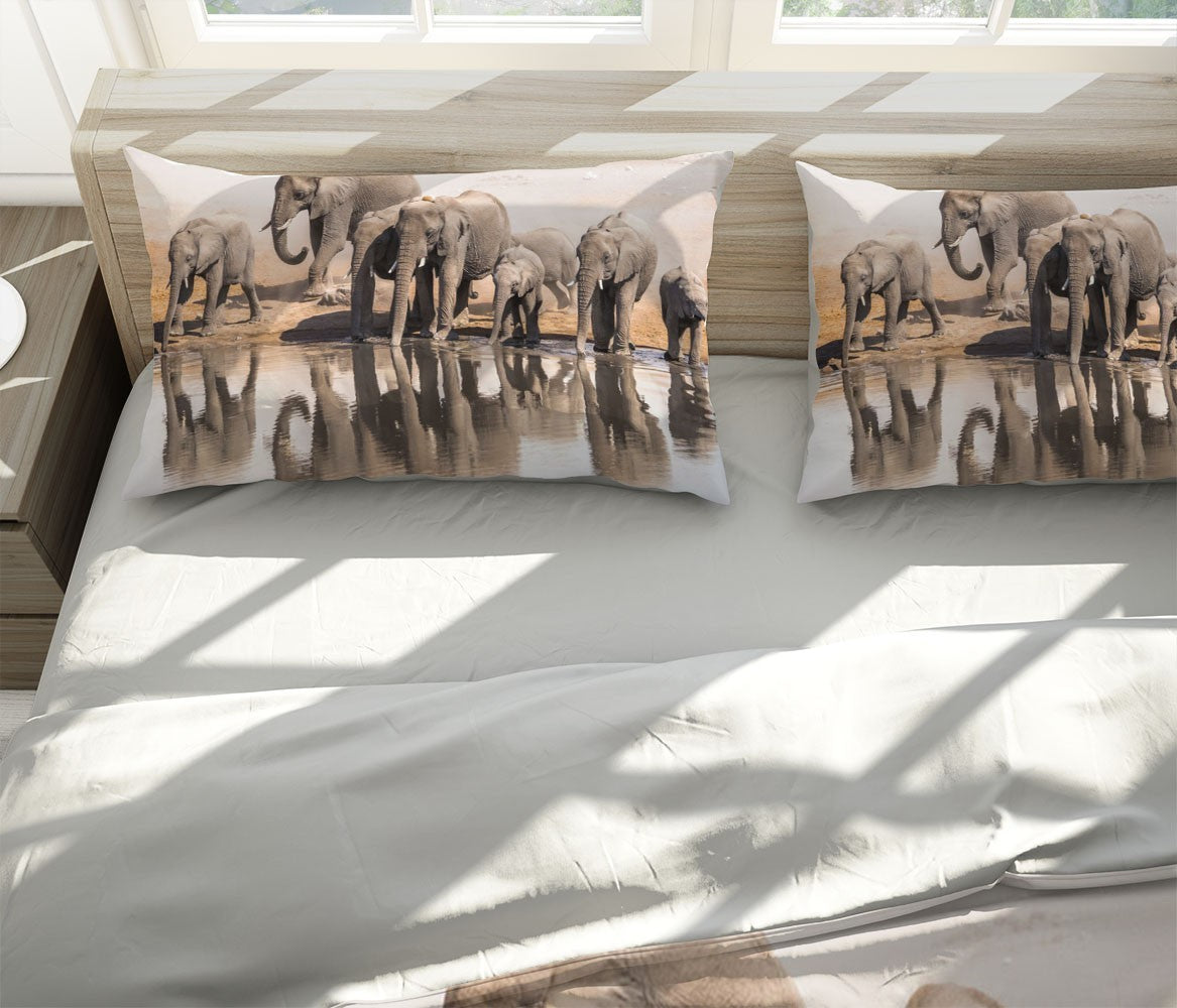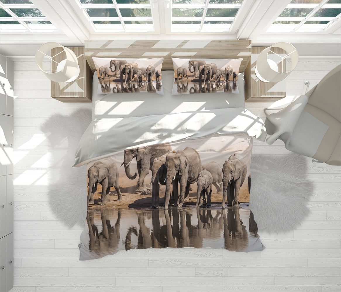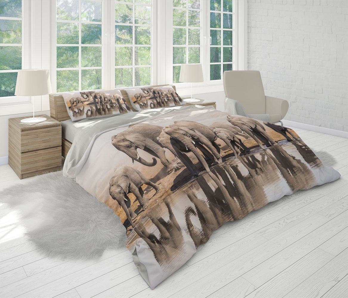 Elephant River Duvet Cover Set W Pillow Cover, Gray Animals Wild Animals 3D Quilt Cover, Single Double Queen King Size Doona Cover
