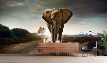 Elephant Road Animals Wild Animals Brown Wallpaper Mural,Self-Adhesive Peel And Stick 3D Wall Art,Designer Bedroom Wall Decor