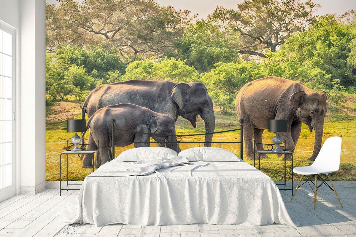 Elephants Animals Wild Animals Gray Wallpaper Mural,Self-Adhesive Peel And Stick 3D Wall Decal,Australian Company Removable Wall Decor