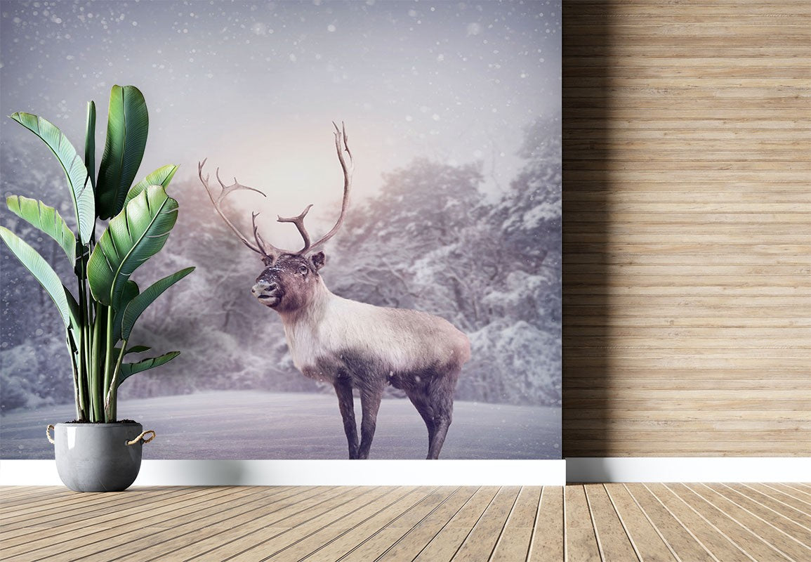 Elk Animals Wild Animals Gray Wallpaper Mural,Self-Adhesive Peel And Stick 3D Wall Paper,Bedroom Removable Wall Decor