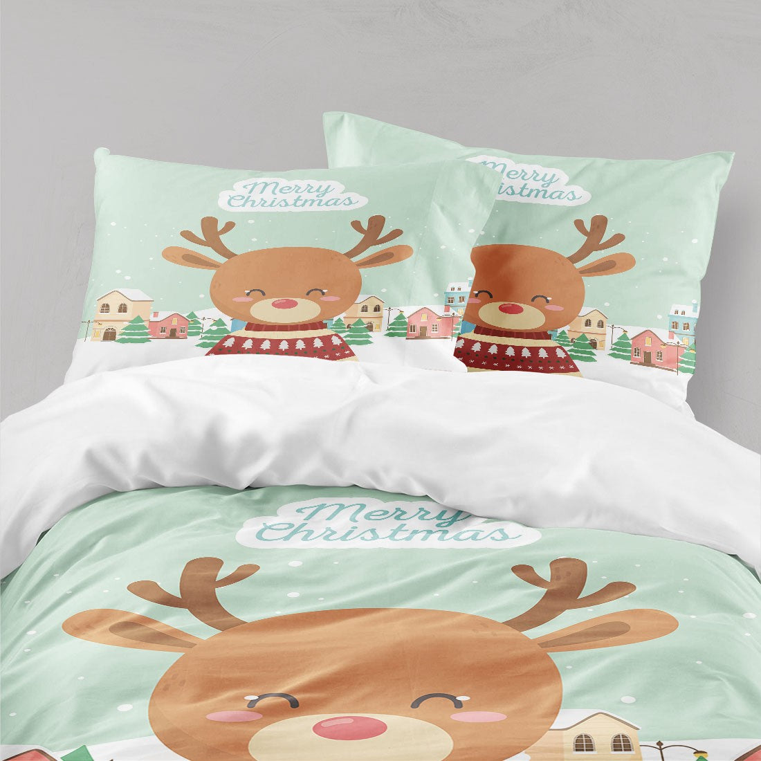 Elk House Duvet Cover Set W Pillowcases, Green Kids Cartoon 3D Quilt Cover, 3Pc Single Double Queen King Size Doona Cover