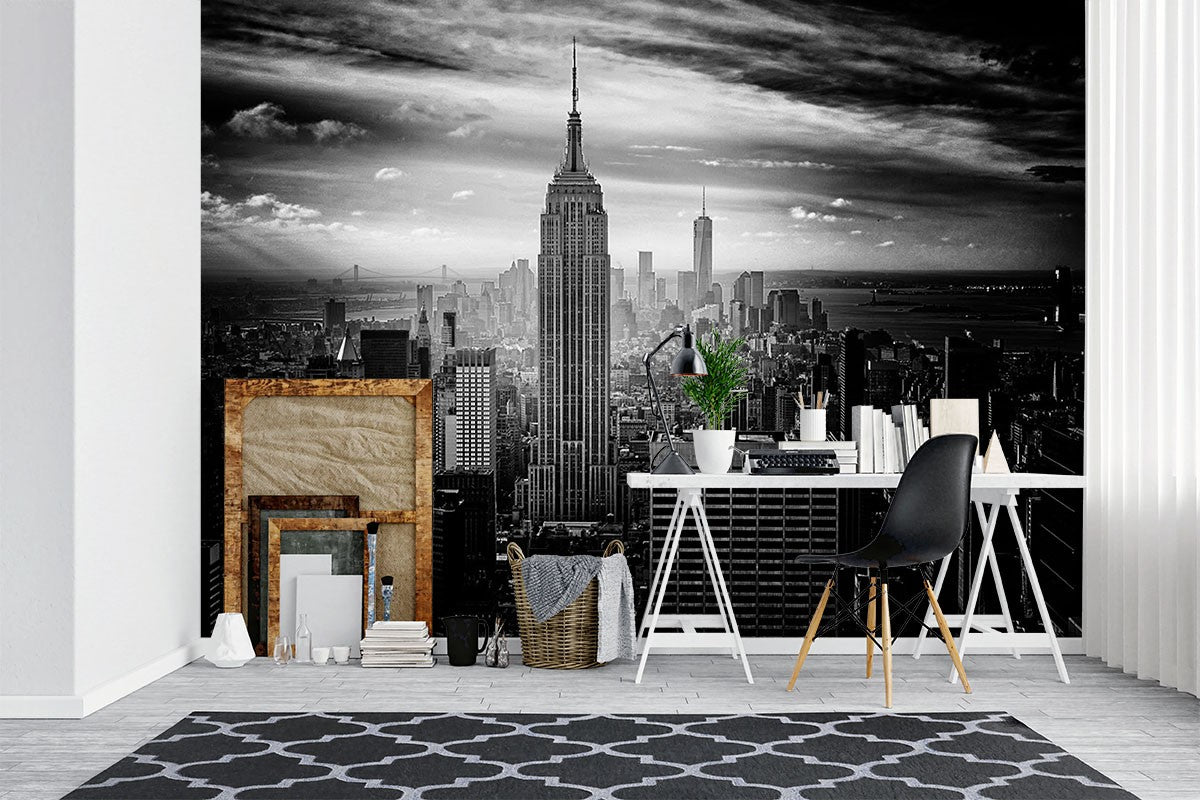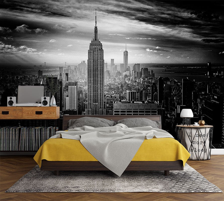 Empire State Building Landmarks Black&White Wallpaper Mural,Self-Adhesive Peel And Stick 3D Wall Decor,Removable Bedroom Wall Decor