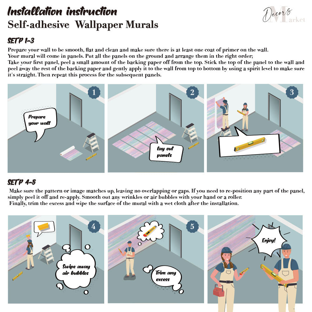 Installing our mural wallpaper is a breeze. For secure shipping, your mural arrives in manageable, same-size panels, resembling wallpaper rolls. You have the option to hire professionals or embark on a DIY installation. Rest assured, we provide comprehensive instructions to ensure a seamless setup.