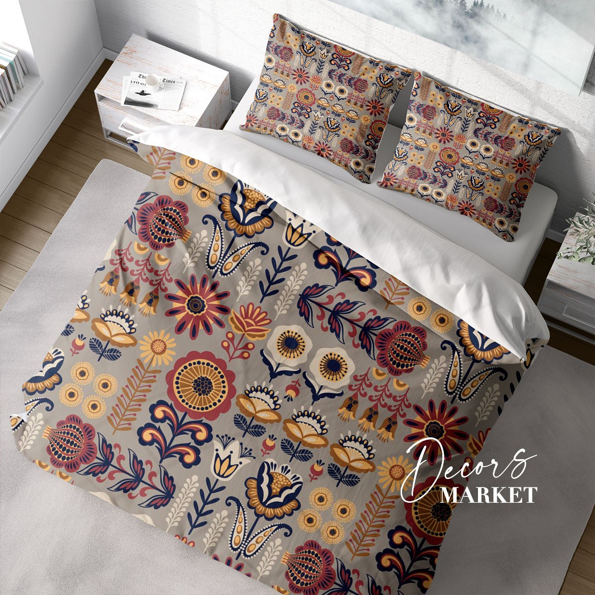 Ethnic Indian Leaf Flower Duvet Cover Set w Pillowcases, Brown Texture Patterns 3D Quilt Cover, 3pc Double Queen King Size Doona Cover