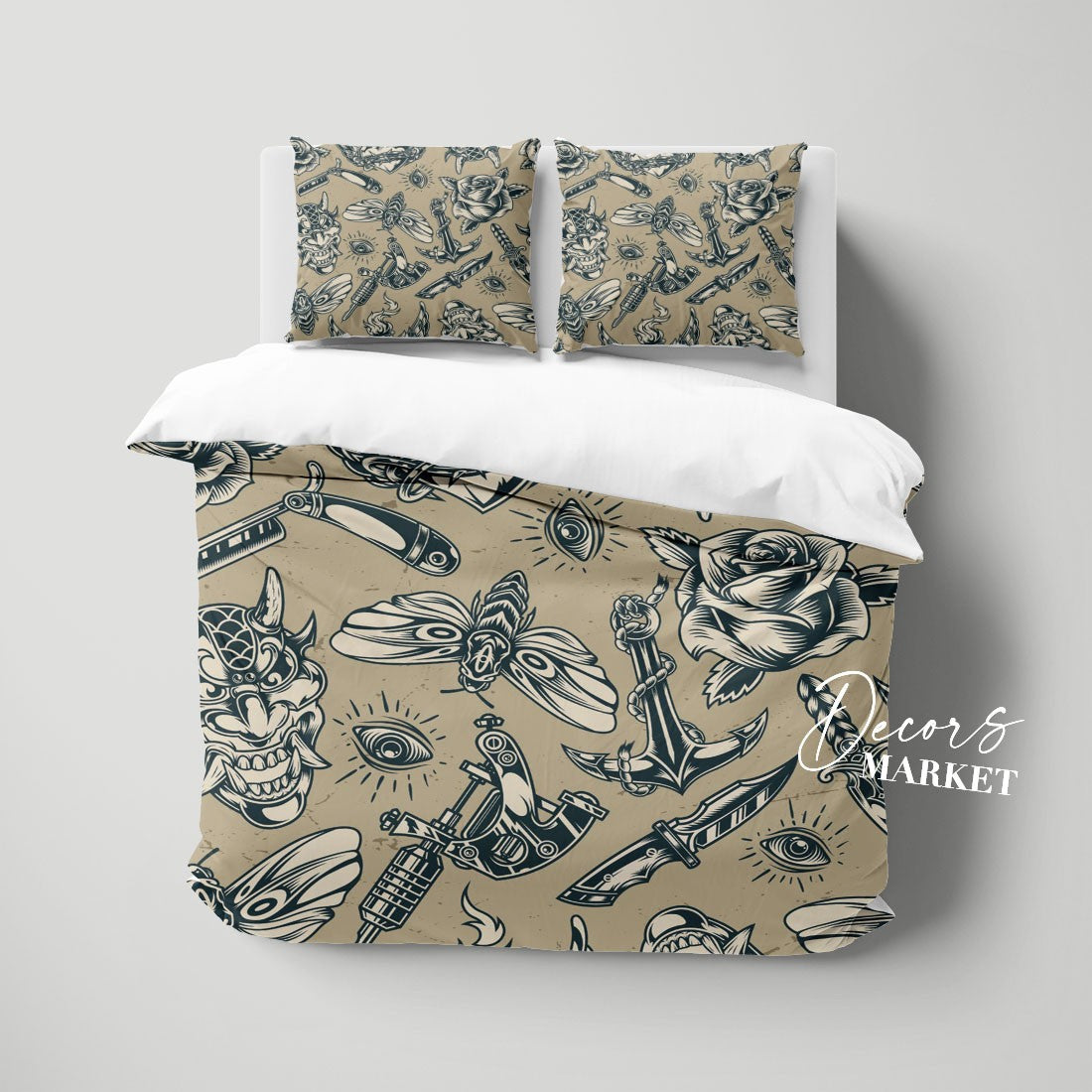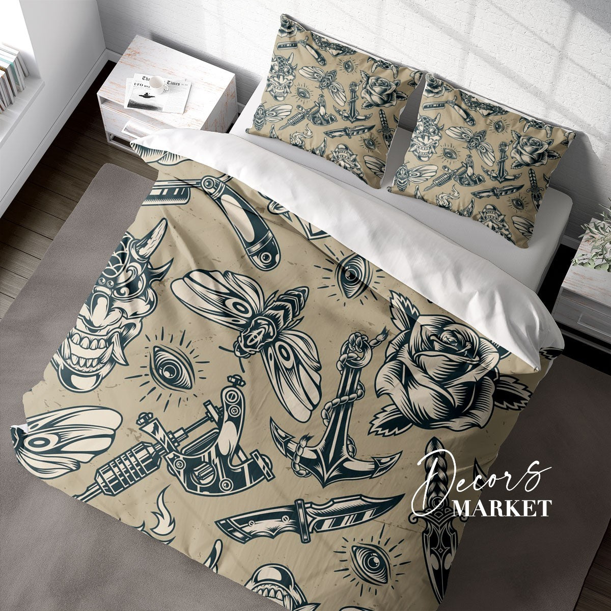 Eye Crown Knife Duvet Cover Set w Pillowcases, Black&White Art Fantasy 3D Quilt Cover, 3pc Single Double Queen King Size Doona Cover
