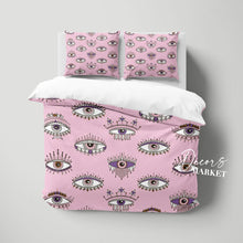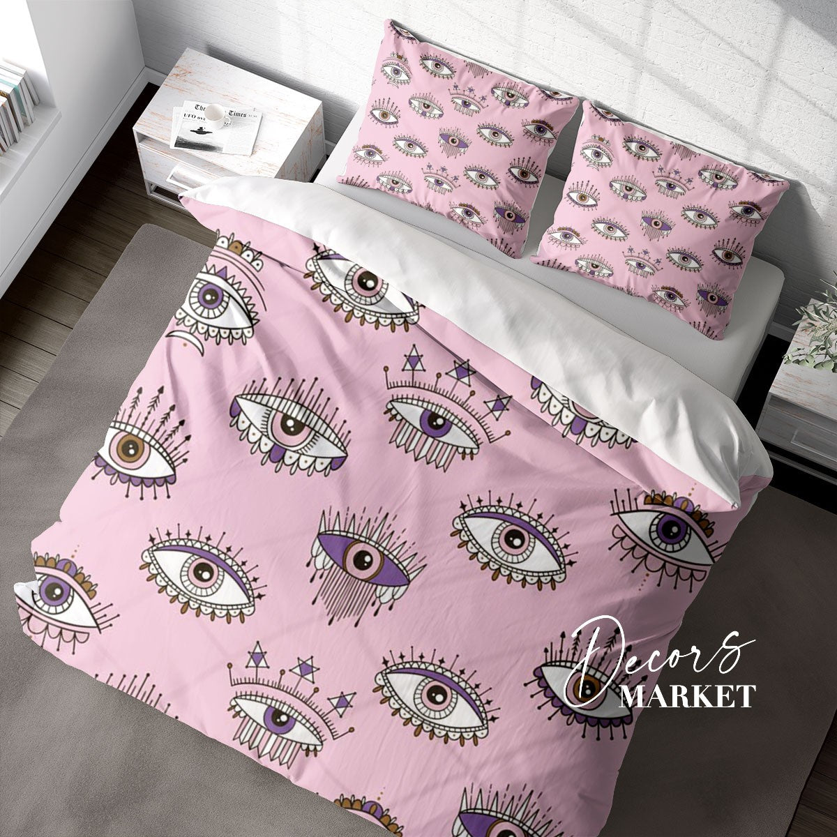 Eye Feather Duvet Cover Set w Pillowcases, Pink Art Fantasy 3D Quilt Cover, 3pc Single Double Queen King Size Doona Cover