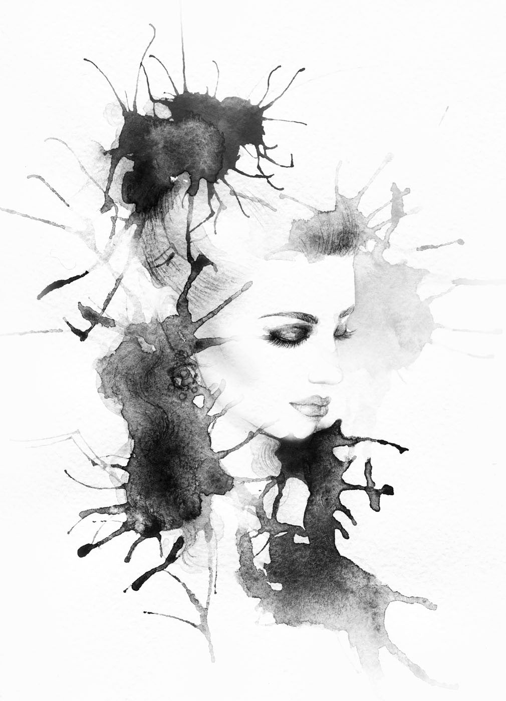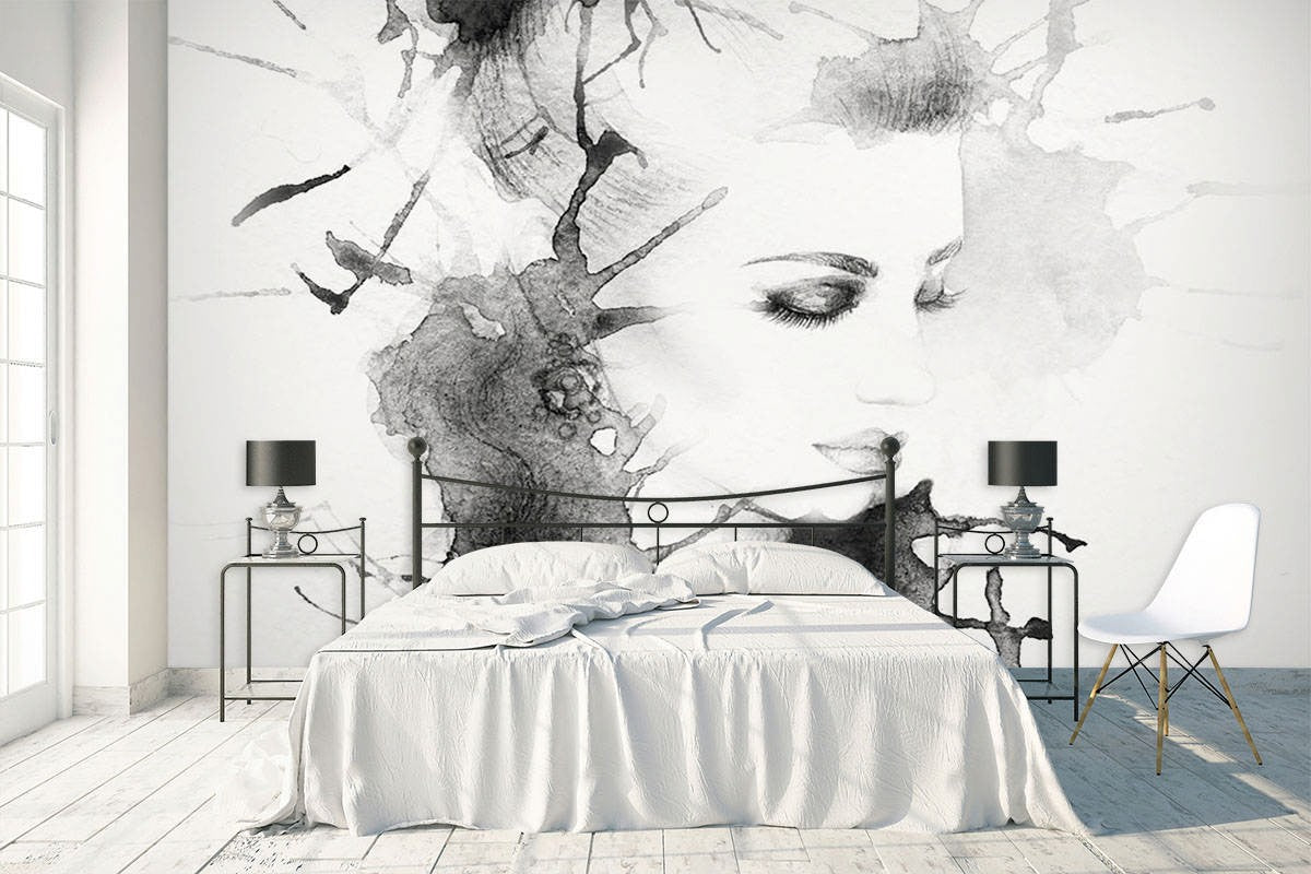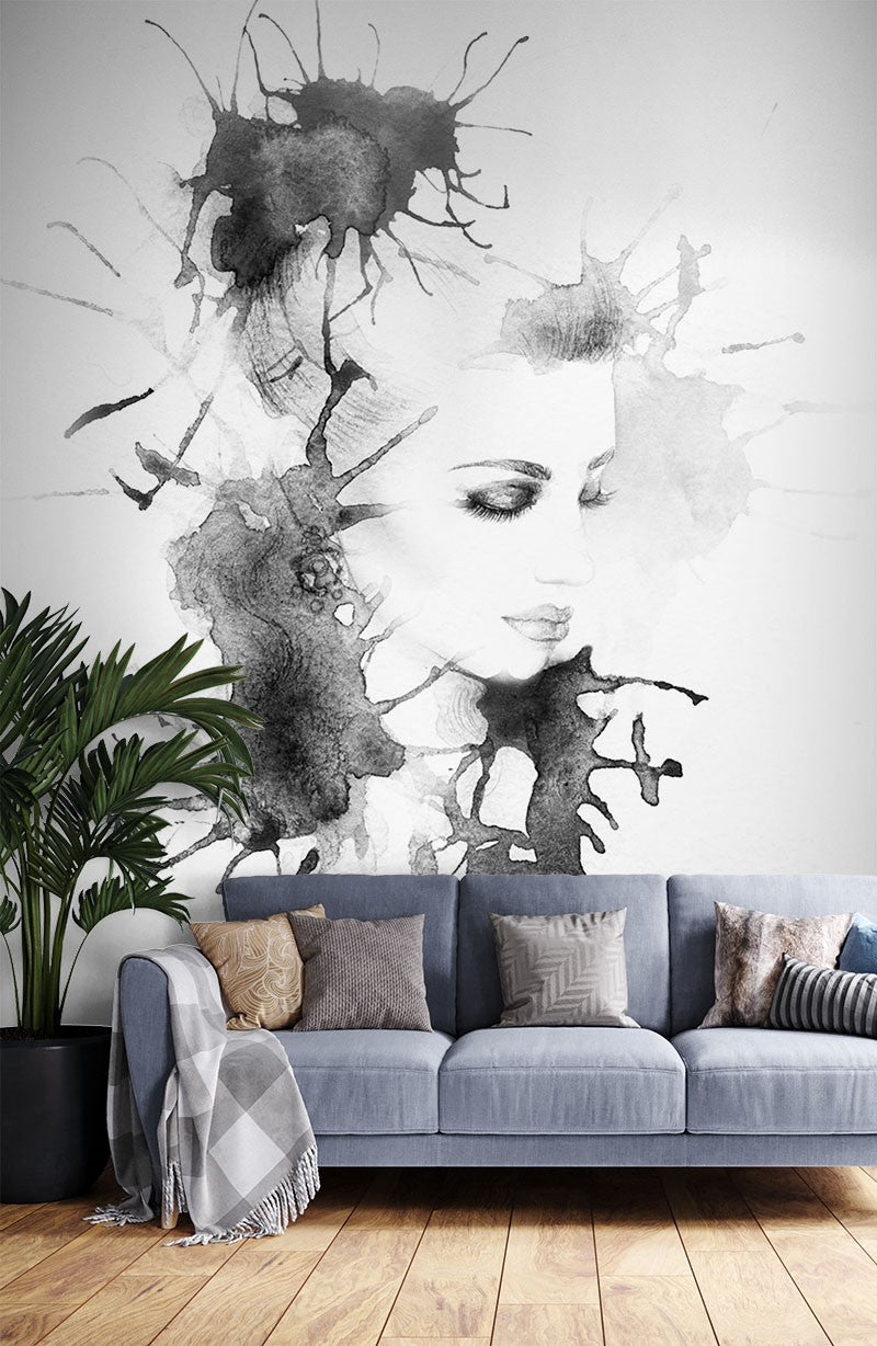 Face Art Watercolor Black Wallpaper Mural,Self-Adhesive Peel And Stick 3D Wall Paper,Removable Australian Company Wall Decor