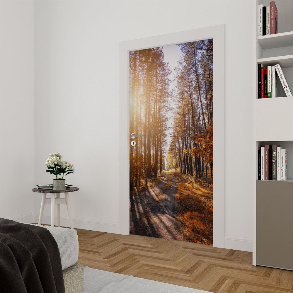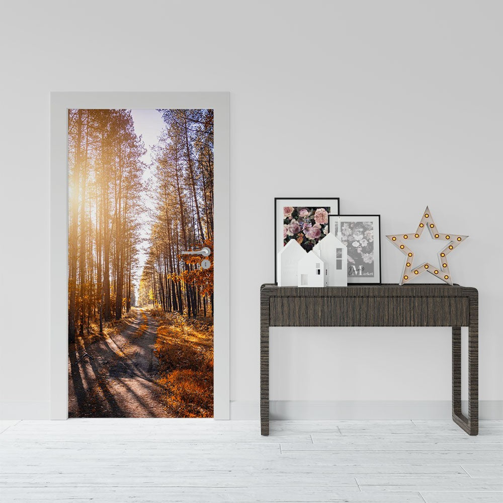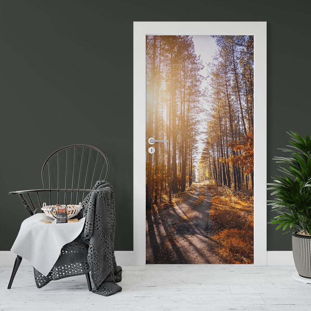 Fallen Leaves Forest Seasons Door Wrap, Customized Mural For Door, Door Mural Sticker, Peel And Stick Door Cover, Removable Door Decal