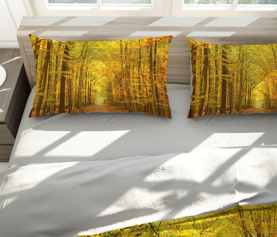 Fallen Leaves Forest Seasons Gold 3D Duvet Cover Set W Pillow Cover, Single Double Queen King Size, Printed Cotton Quilt Doona Cover 3 Pcs