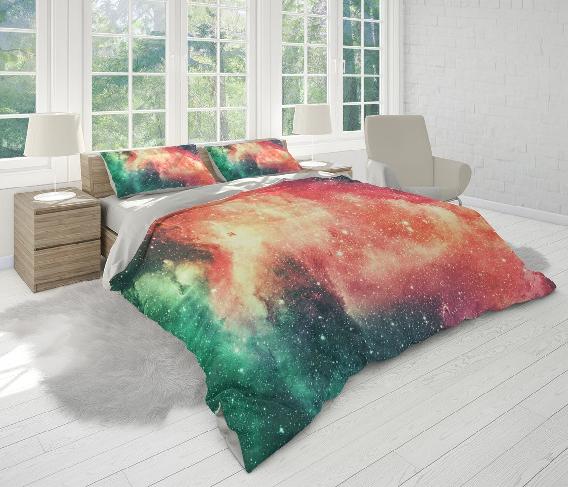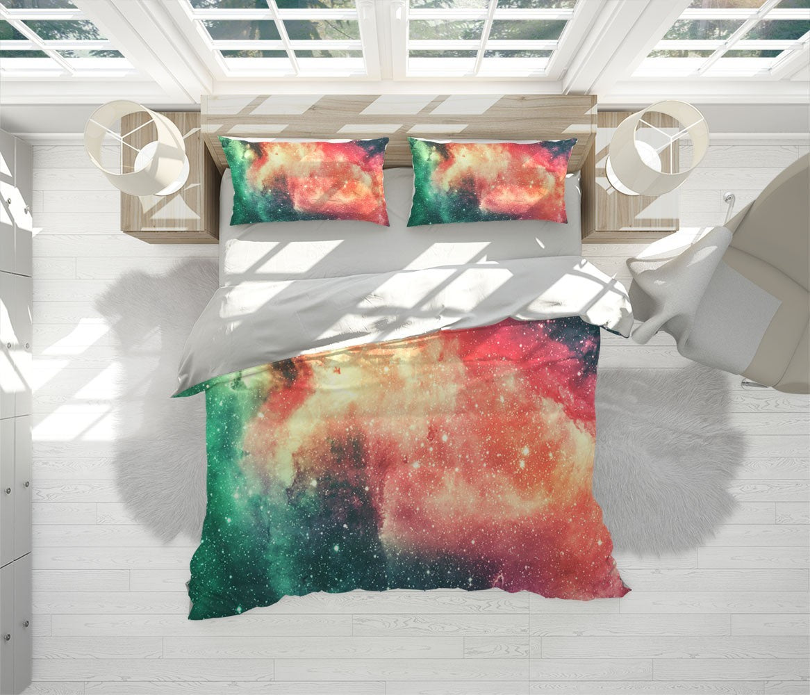 Fantasy Galaxy Duvet Cover Set W Pillow Cover, Multicolour Nature Space 3D Quilt Cover, Single Double Queen King Size Doona Cover