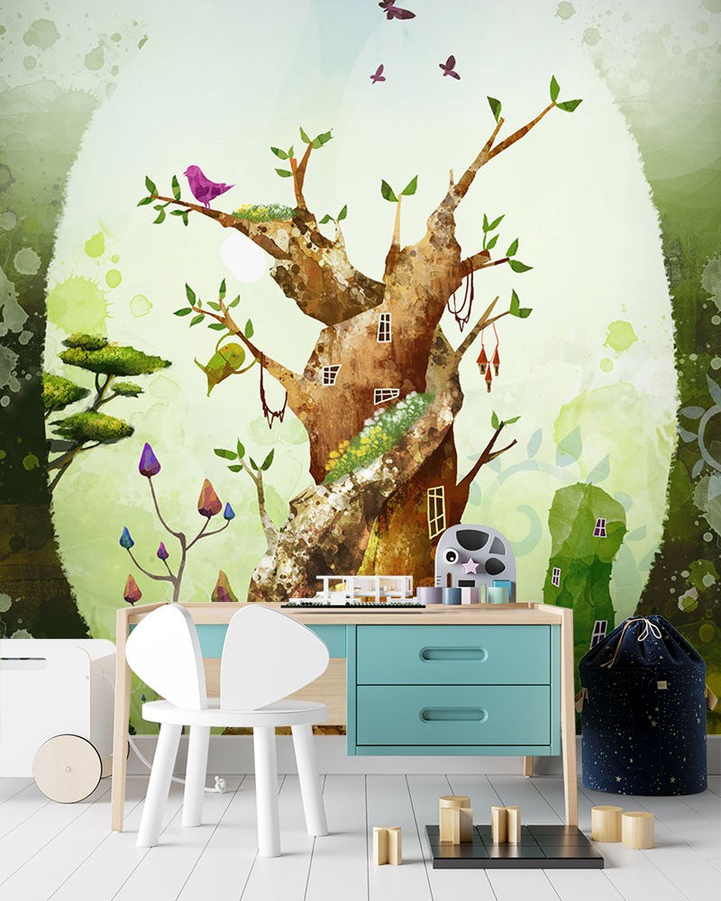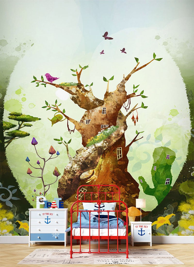 Fantasy House Art For Kids Bright Wallpaper Mural,Self-Adhesive Peel And Stick 3D Wall Decor,Bedroom Australian Company Wall Decor