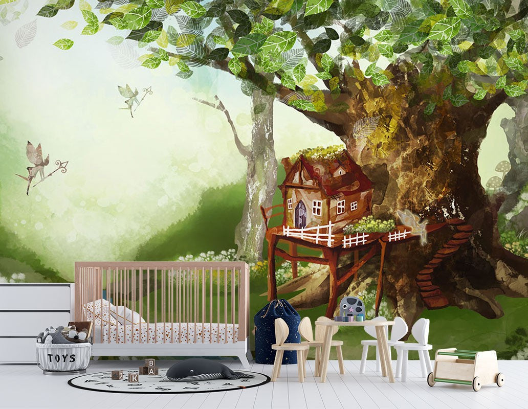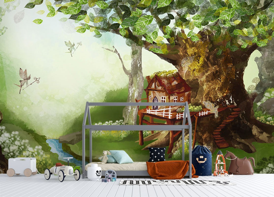 Fantasy House Kids Bright Wallpaper Mural,Self-Adhesive Peel And Stick 3D Wall Paper,Designer Removable Wall Decor