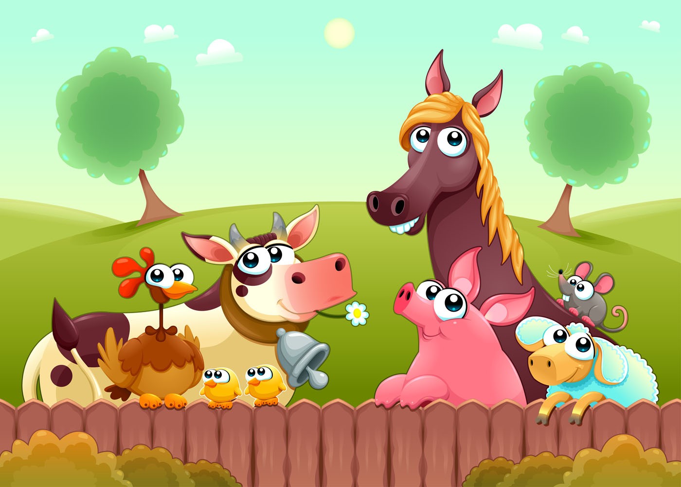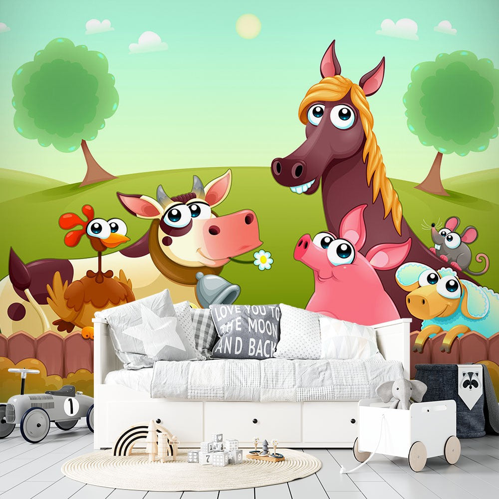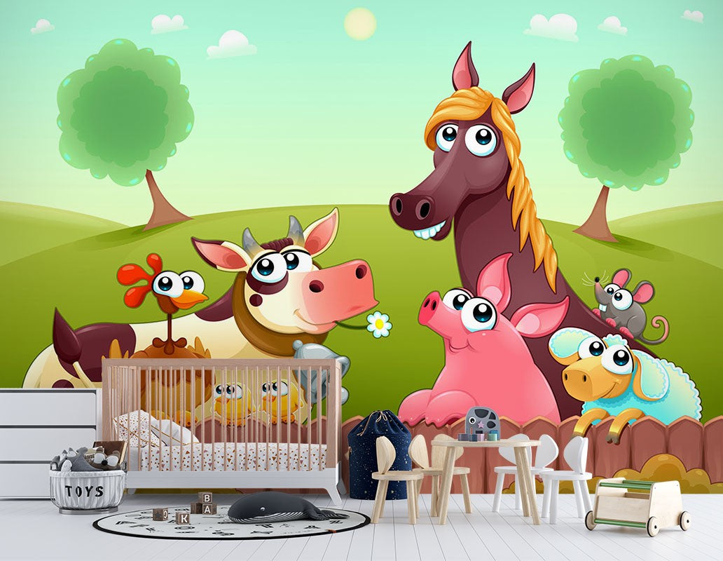 Farm Livestock Kids Animal Green Wallpaper Mural,Self-Adhesive Peel And Stick 3D Wall Decor,Designer Bedroom Wall Decor
