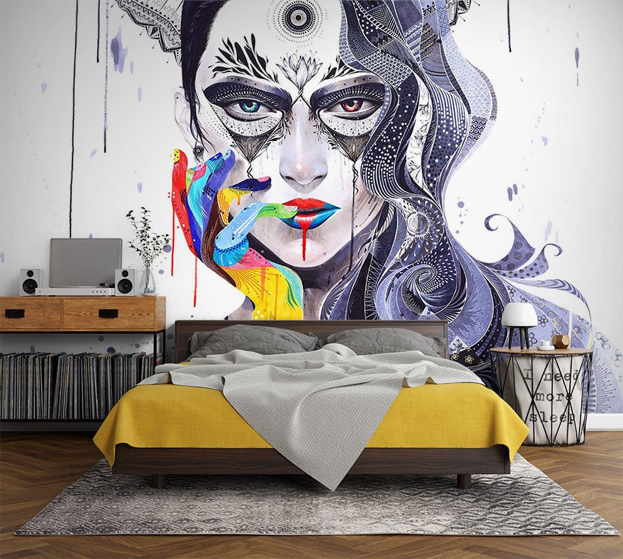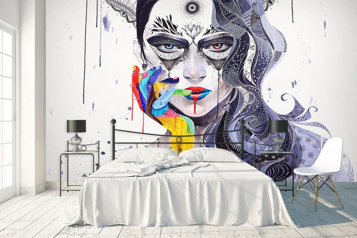 Fashionable Women Art Pop Art Multicolour Wallpaper Mural,Self-Adhesive Peel And Stick 3D Wall Decal,Bedroom Australian Company Wall Decor