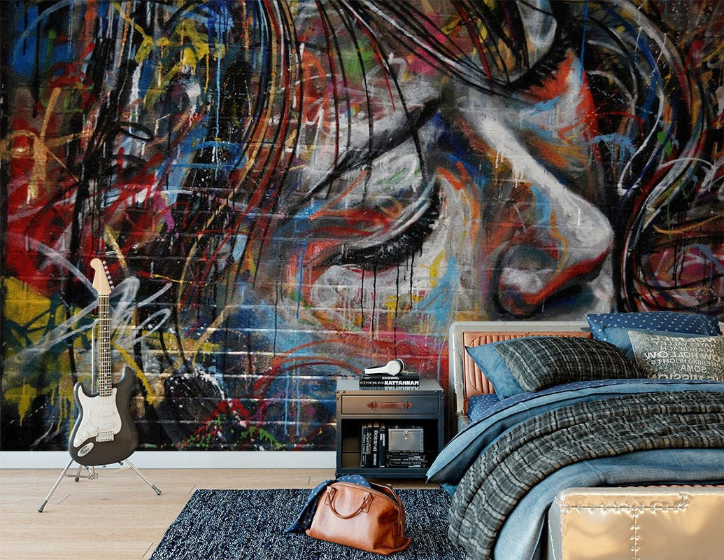 Fashionable Women Graffiti Multicolour Wallpaper Mural,Self-Adhesive Peel And Stick 3D Wall Mural,Bedroom Designer Wall Decor