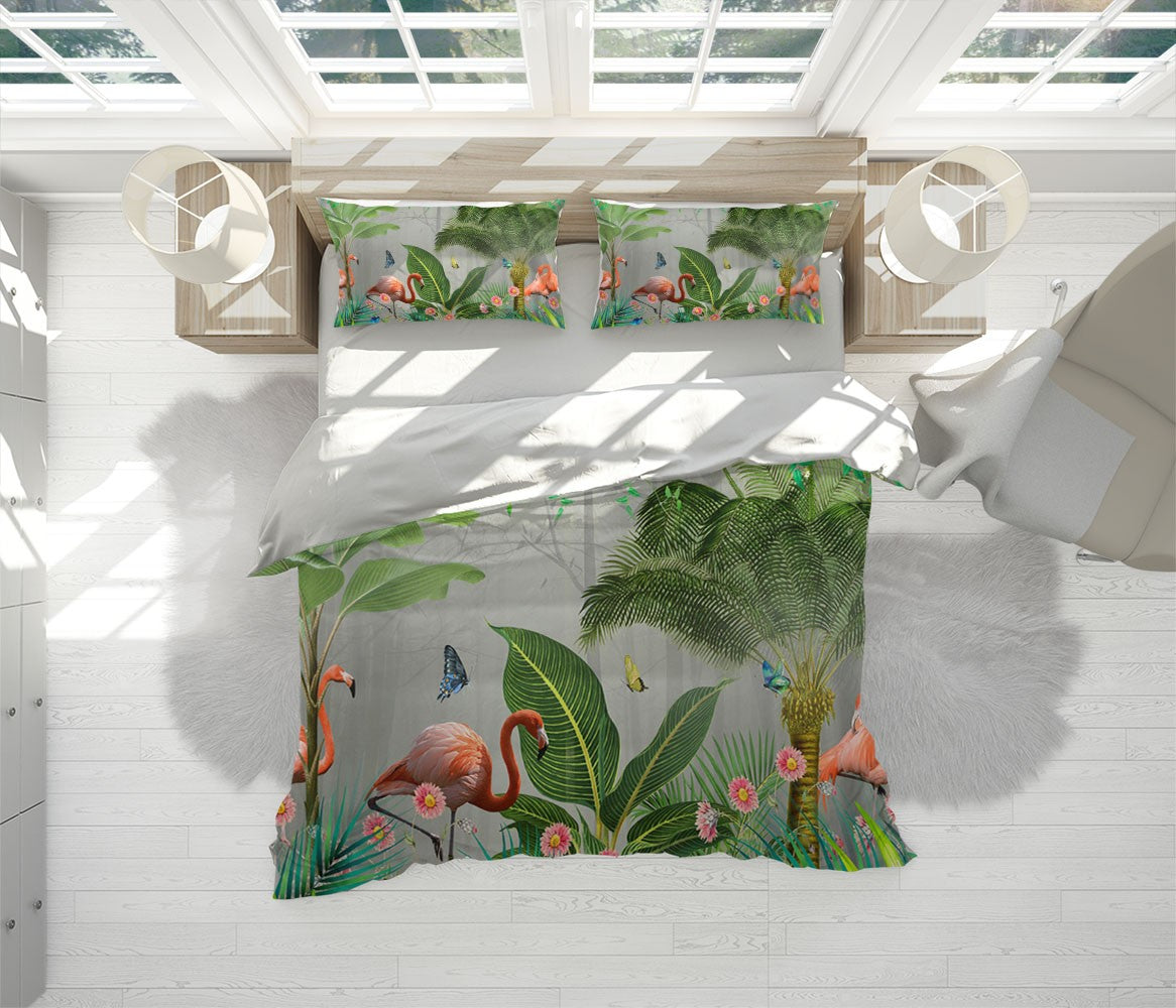 Flamingo Animals Birds Red 3D Duvet Cover Set W Pillow Cover, Single Double Queen King Size, Printed Cotton Quilt Doona Cover 3 Pcs