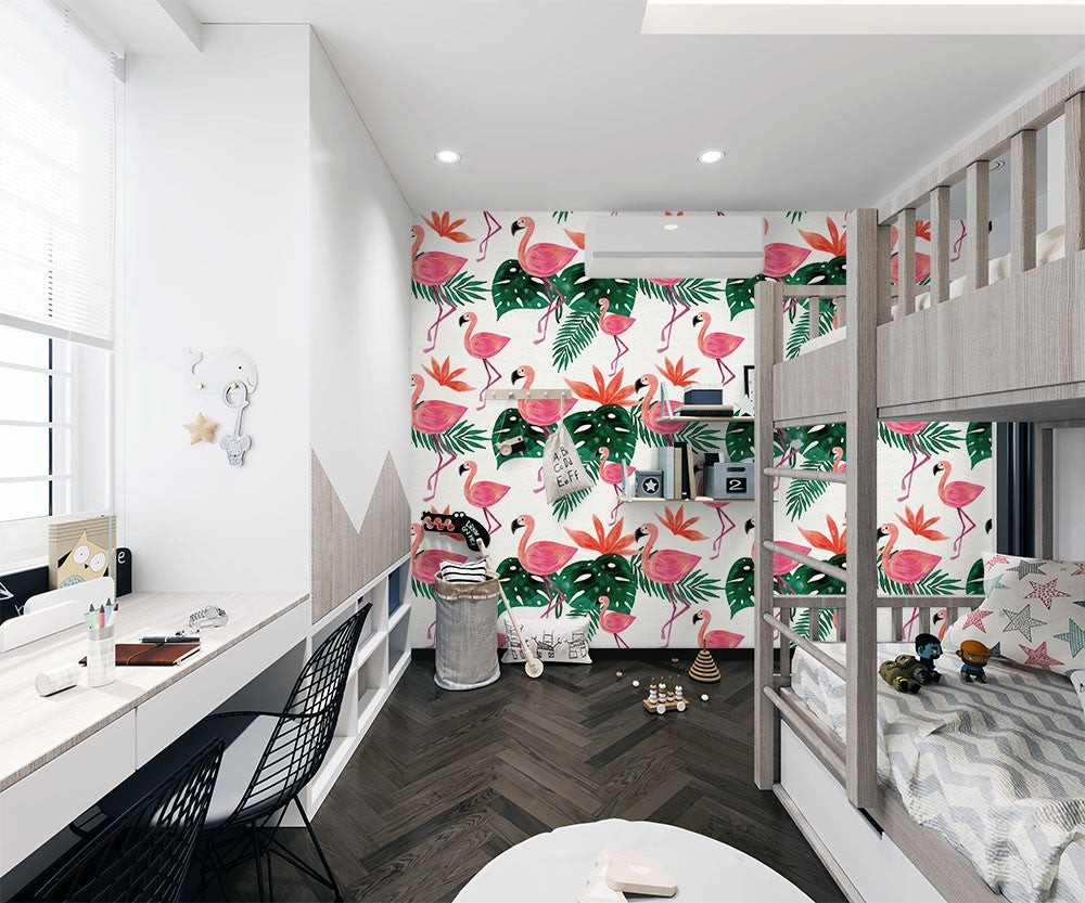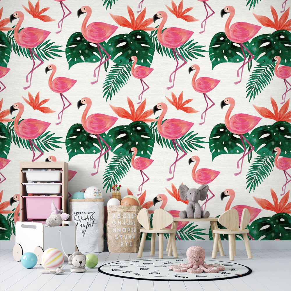 Flamingo Monstera Kids Animal Pink Wallpaper Mural,Self-Adhesive Peel And Stick 3D Wall Paper,Australian Company Designer Wall Decor