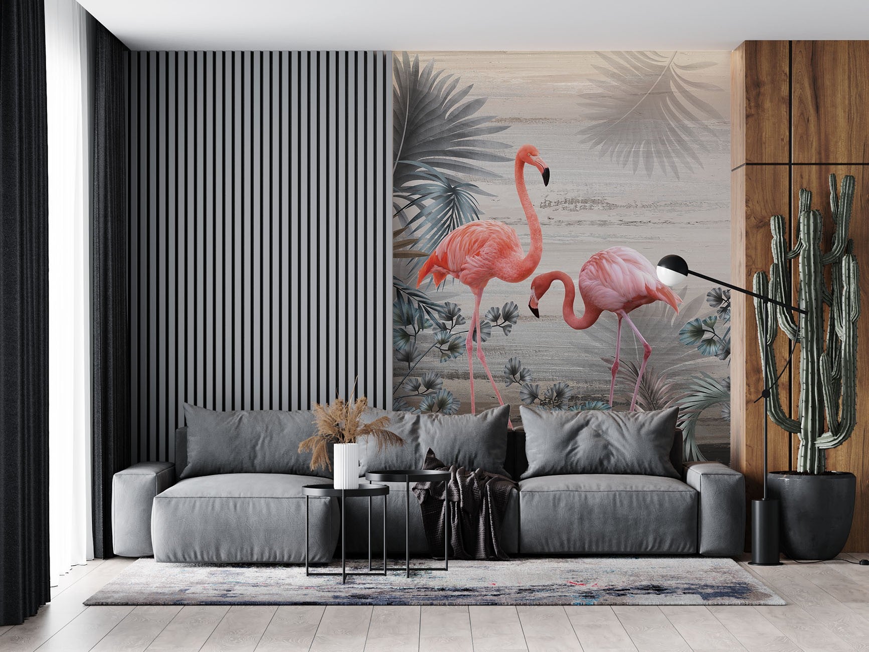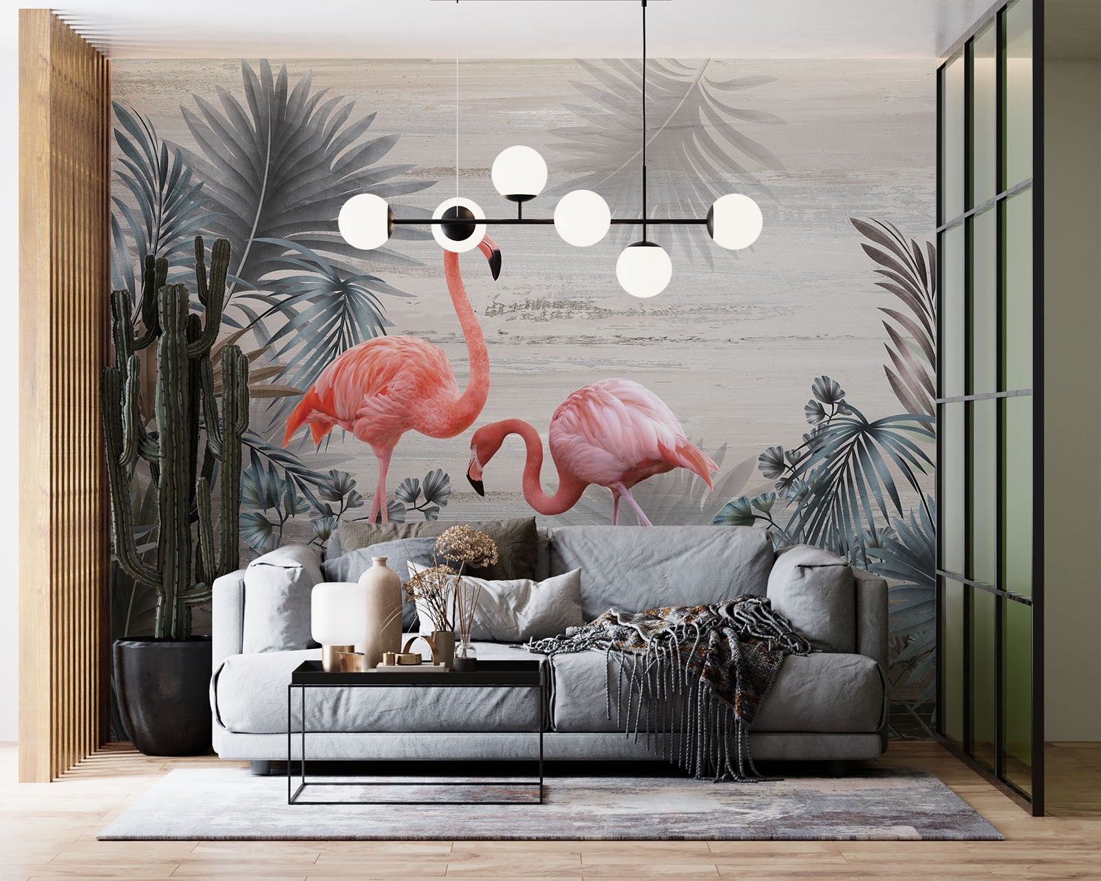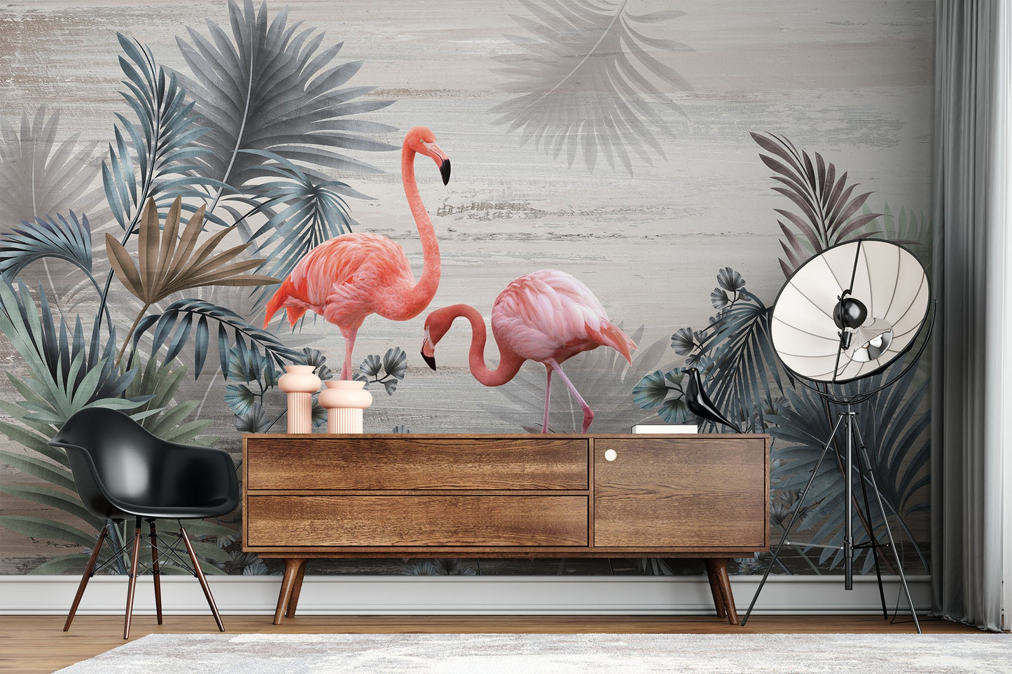Flamingos Leaves Animals Birds Pink Wallpaper Mural