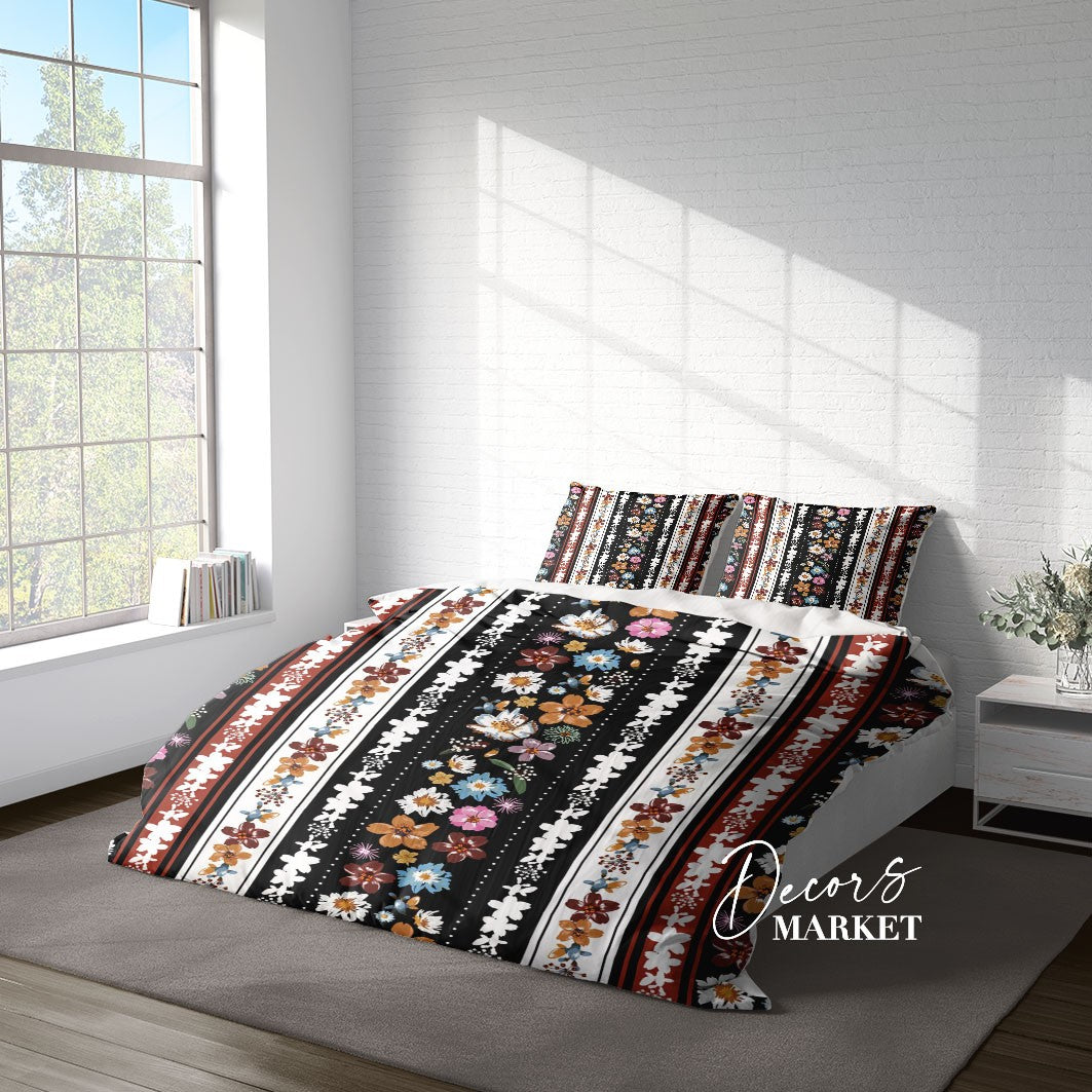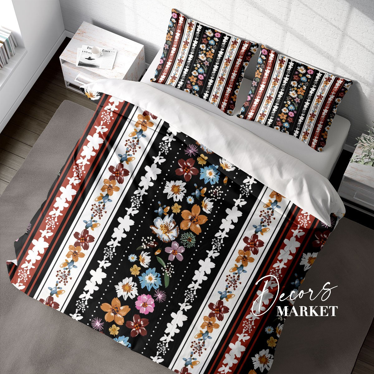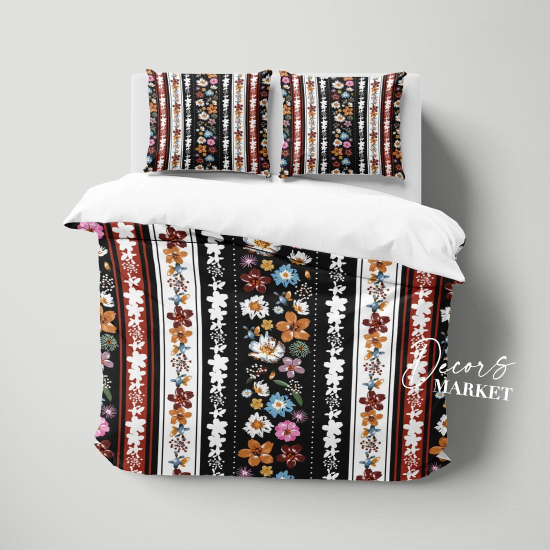 Floral Patten Stripes Duvet Cover Set w Pillowcases, Colorful Floral Flowers 3D Quilt Cover, 3pc Single Double Queen King Size Doona Cover
