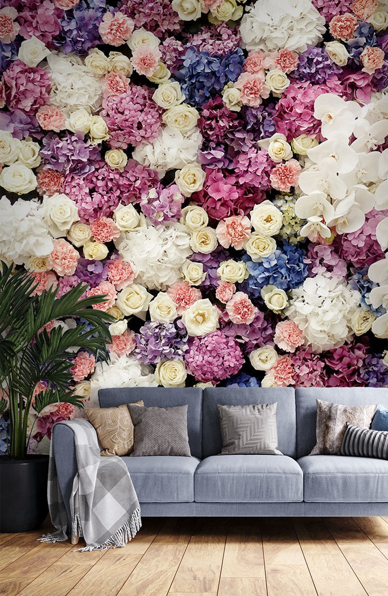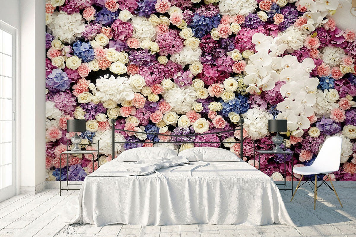 Floral Pattern Dutch Flowers Multicolour Wallpaper Mural,Self-Adhesive Peel And Stick 3D Wall Paper,Removable Bedroom Wall Decor