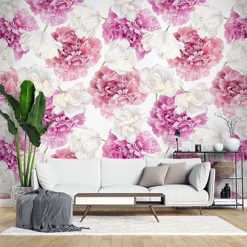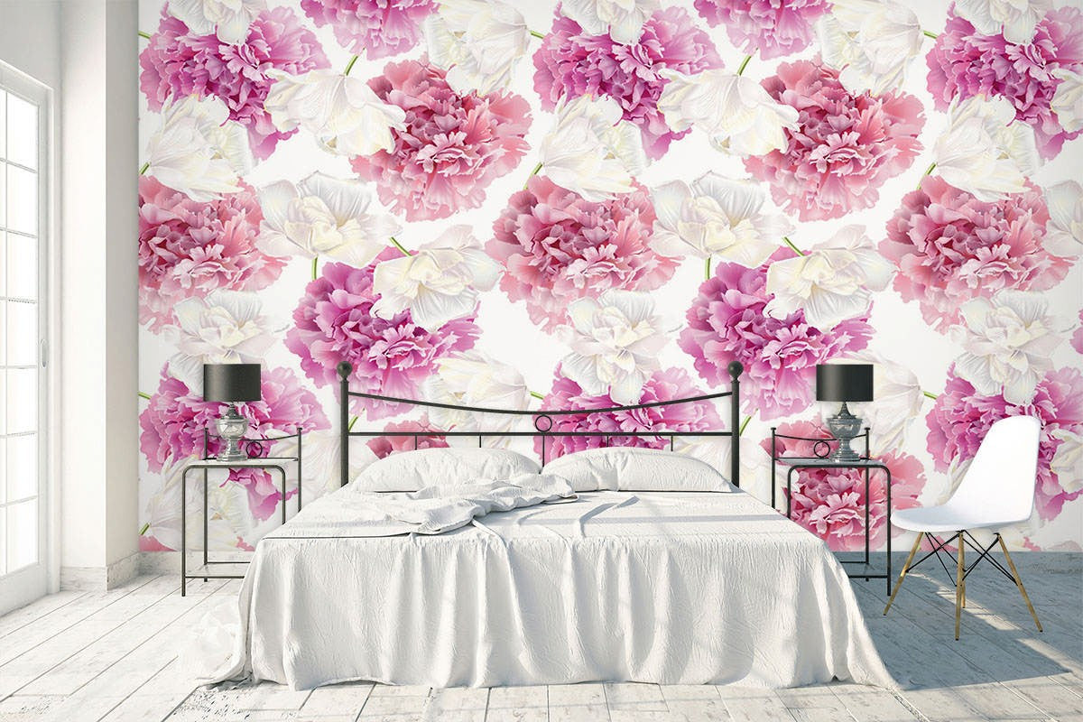 Floral Pattern Dutch Flowers Pink Wallpaper Mural,Self-Adhesive Peel And Stick 3D Wall Paper,Bedroom Designer Wall Decor